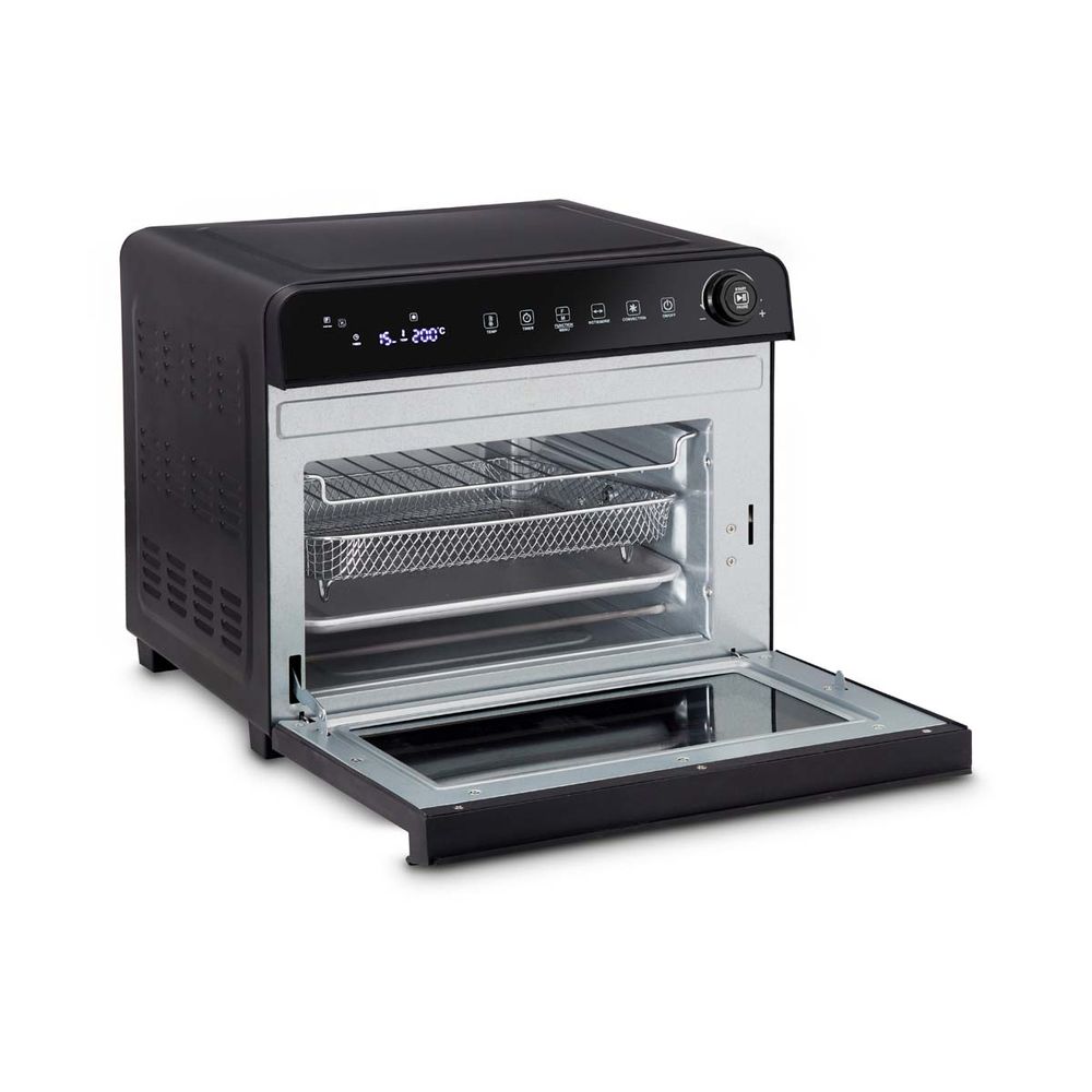 Διαθέτει χωρητικότητα XXL 22 Lt, περιστρεφόμενο καλάθι και rotisserie, ταψί αλουμινίου, ορθογώνιο καλάθι ψησίματος και σχάρα, καθώς και ψηφιακή οθόνη αφής, πάνω/κάτω αντίσταση, ρυθμιζόμενο θερμοστάτη 90–230 °C και χρονοδιακόπτη έως 120’.