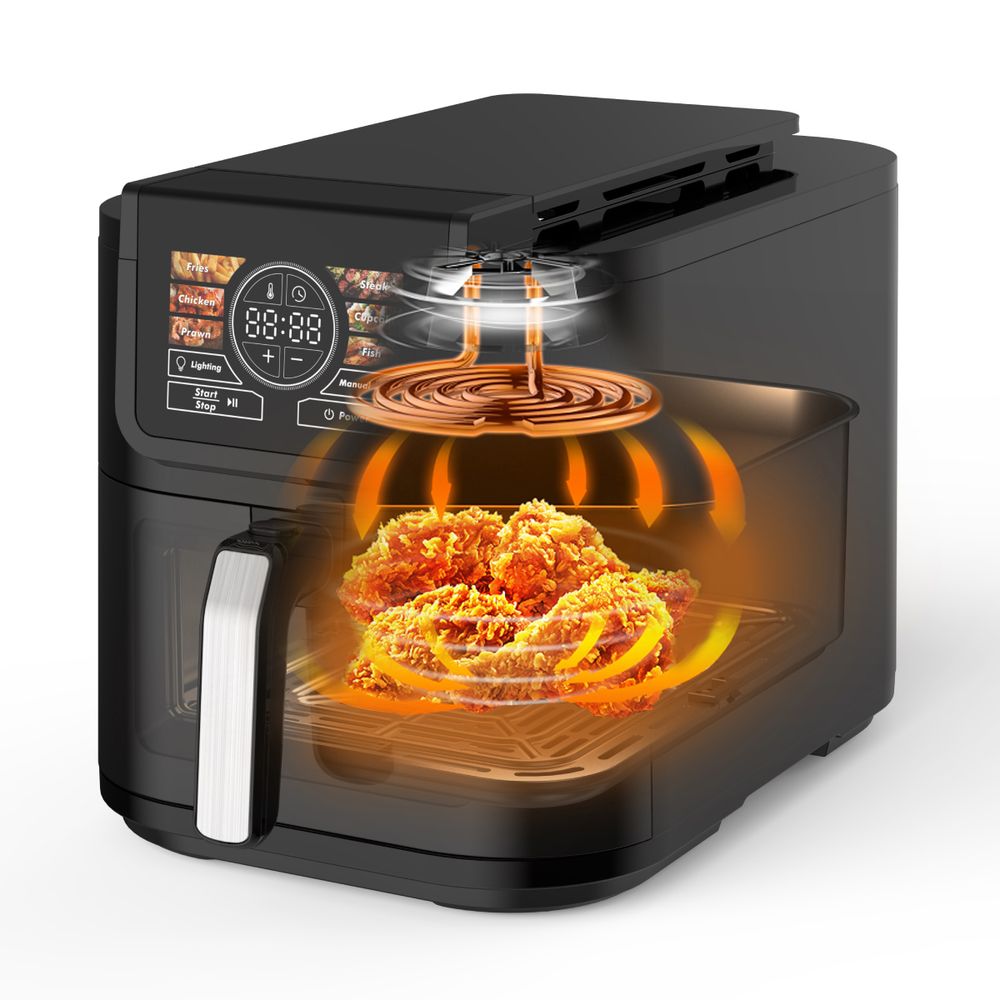 Η Slim Φριτέζα Αέρος XL 8 λίτρων με παράθυρο είναι ιδανική για υγιεινό μαγείρεμα χωρίς λάδι. Με μεγάλη χωρητικότητα 8 λίτρων, μπορείς να μαγειρέψεις μεγάλες ποσότητες φαγητού εύκολα και γρήγορα. Το παράθυρο σου επιτρέπει να παρακολουθείς το μαγείρεμα χωρίς να χρειάζεται να ανοίγεις τη φριτέζα, διατηρώντας έτσι τη θερμοκρασία σταθερή.