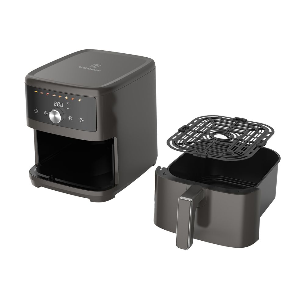 Φριτέζα αέρος Morris με χωρητικότητα 6lt με ισχύ 1500 Watt για γρήγορο και υγιεινό μαγείρεμα. Διαθέτει 8 αυτόματα προγράμματα για να δημιουργήσεις εύκολα την αγαπημένη σου συνταγή και χρονοδιακόπτη λειτουργίας 60 λεπτών.