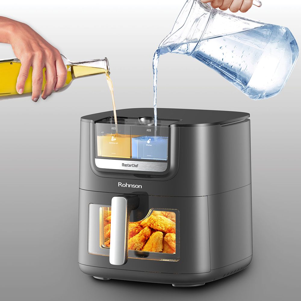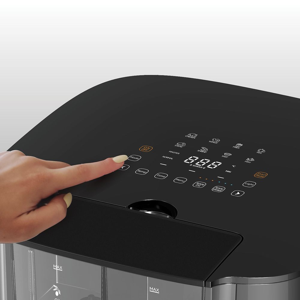 Προηγμένη τεχνολογία Air Fryer, Έξυπνη λειτουργία ψεκασμού λαδιού για να κάνει το φαγητό πιο τραγανό, Έξυπνη λειτουργία ψεκασμού νερού για να διατηρεί το φαγητό ακόμα πιο ζουμερό, Μεγάλος αποσπώμενος κάδος χωρητικότητας 7 λίτρων, Easy view κάδος για παρακολούθηση της κατάστασης μαγειρέματος ανά πάσα στιγμή, 100% ασφαλής επίστρωση – χωρίς BPA & PFAS, Υψηλής ακρίβειας ρύθμιση θερμοκρασίας από 80°C έως 200°C, Φωτεινή ένδειξη για καλύτερη προβολή της διαδικασίας μαγειρέματος, Λειτουργία υπενθύμισης για ανακίνηση, Τα αντικολλητικά αποσπώμενα αξεσουάρ πλένονται στο πλυντήριο πιάτων