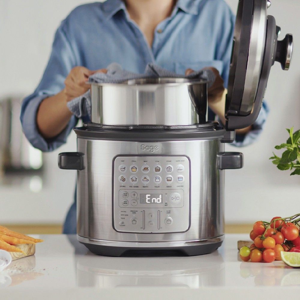 Ο πολυμάγειρας με ατμό της Sage, με ισχύ 1100W σου προσφέρει ασφάλεια, ταχύτητα και απόλυτη ακρίβεια σε κάθε συνταγή. Με μπολ και σχάρα από ανοξείδωτο ατσάλι και συλλέκτη υπολειμμάτων, είναι έτοιμη για κάθε πρόκληση στην κουζίνα. Χάρη στη ρύθμιση αυτόματης απελευθέρωσης ατμού χωρίς χέρια (Quick, Pulse ή Natural) και τους διπλούς αισθητήρες θερμοκρασίας και πίεσης, εξασφαλίζεις τέλεια γεύση. Το σύστημα ασφαλείας 3 σταδίων εγγυάται σίγουρο και ξέγνοιαστο μαγείρεμα κάθε φορά.