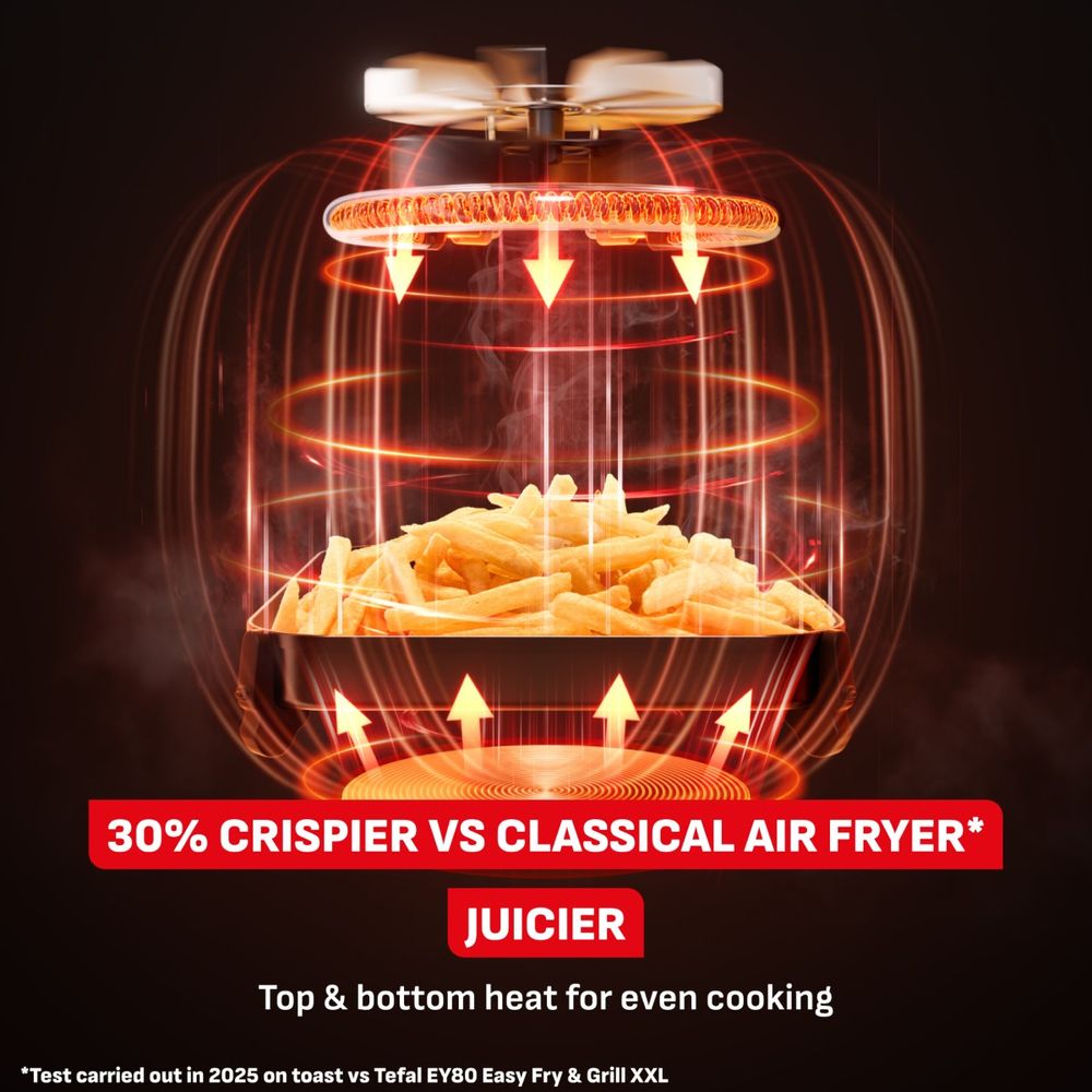 Γρηγορότερα, πιο τραγανά, πιο ζουμερά αποτελέσματα χάρη στην τεχνολογία Infra-Heat™ Ανακαλύψτε την Easy Fry Infrared, την πρώτη φριτέζα αέρος της Tefal με τεχνολογία υπερύθρων! Απολαύστε τραγανά, νόστιμα αποτελέσματα με ελάχιστα έως καθόλου πρόσθετα λιπαρά ή λάδι - ομοιόμορφα ψημένα φαγητά. Με χωρητικότητα 7 L διαχειρίζεται με ευκολία ογκώδη υλικά, καθιστώντας την ιδανική για οικογένειες. Παράλληλα, τα πρακτικά χαρακτηριστικά της Easy Fry Infrared εγγυώνται εύκολη χρήση - όπως το παράθυρο ελέγχου για εύκολη παρακολούθηση, ο ψηφιακός πίνακας ελέγχου και ο κάδος για τηγάνισμα με αέρα που πλένεται στο πλυντήριο πιάτων για εύκολο καθάρισμα.