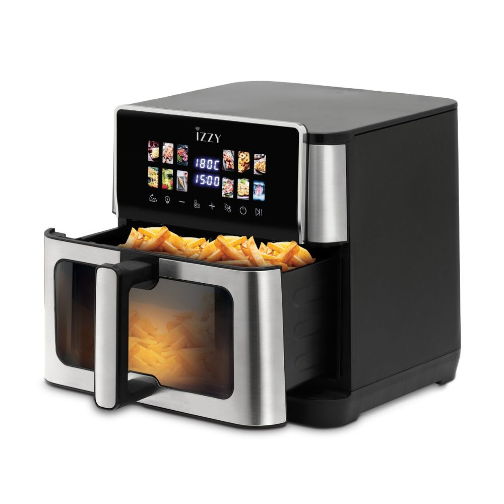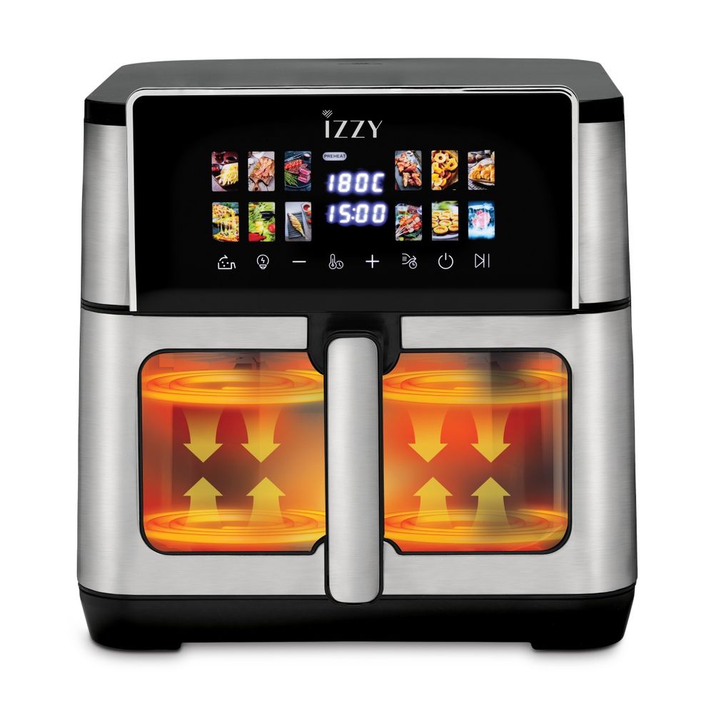 Η φριτέζα αέρα Izzy IZ-8271 XXL 10L σου προσφέρει υγιεινό και γρήγορο μαγείρεμα με τεχνολογία διπλών αντιστάσεων άνω-κάτω, μεταλλική εσωτερική επιφάνεια και παράθυρο Food Control. Η ψηφιακή οθόνη touch με 12 προγράμματα, ο χρονοδιακόπτης και τα αποσπώμενα μέρη για εύκολο καθάρισμα κάνουν το μαγείρεμα απλό και γρήγορο, περιλαμβάνει επίσης βιβλίο συνταγών και 30 αντικολλητικά χαρτιά για περισσότερη άνεση.