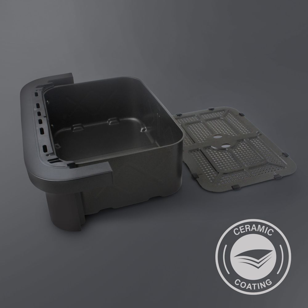Υγιεινό ψήσιμο χωρίς λάδι με 80% λιγότερα λιπαρά, Εξαιρετικά μεγάλη χωρητικότητα 11.5 λίτρων με διαχωριστικό για 2*5.75 λίτρων κάδους, Οθόνη αφής LED με 8 προεπιλεγμένα προγράμματα μαγειρέματος, Φωτεινή ένδειξη για καλύτερη προβολή της διαδικασίας μαγειρέματος, Ασφαλής κεραμική επίστρωση – χωρίς BPA & PFAS, Περιλαμβάνει 50 τεμάχια αντικολλητικών χαρτιών (25x35x5εκ.)