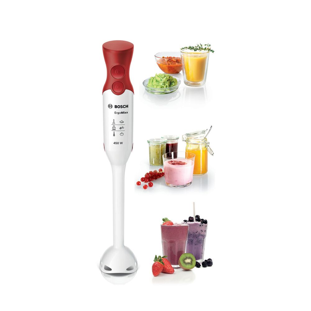 Ράβδος μπλέντερ MSM64010 ισχύος 450 Watt με μοναδικό σύστημα τεσσάρων λεπίδων QuattroBlade που καθιστά εύκολη την πολτοποίηση, την ανάμειξη και το ψιλοκόψιμο.