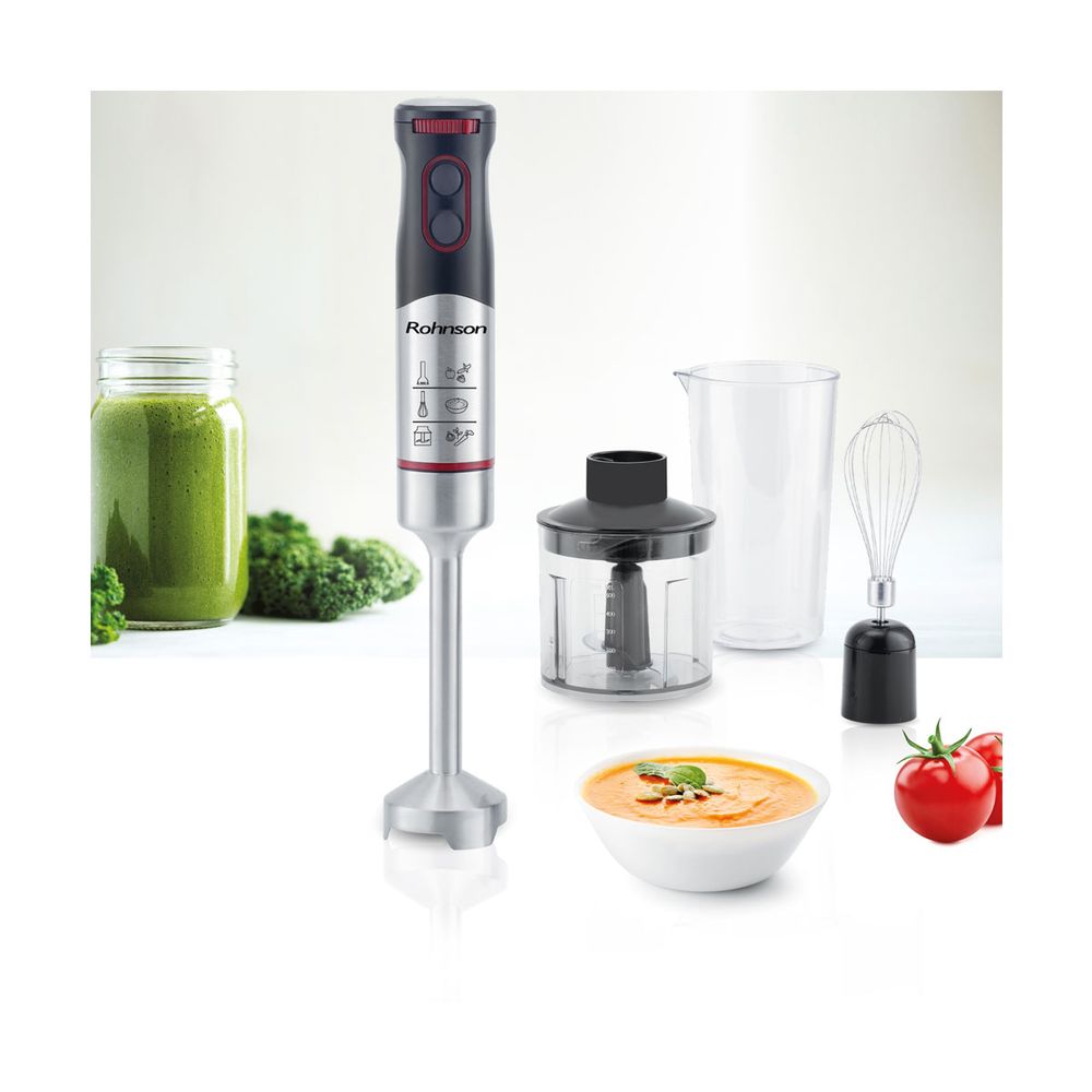 Δημιούργησε τα πιο γευστικά κι εντυπωσιακά φαγητά με το ραβδομπλέντερ Rohnson R-5795. Κομψό, με επένδυση από ανοξείδωτο ατσάλι, και παντοδύναμο, με λειτουργία turbo, DC μοτέρ μέγιστης ισχύος 900W, εργονομική λαβή, τριπλή λεπίδα τιτανίου και ροδέλα ρύθμισης ταχυτήτων.