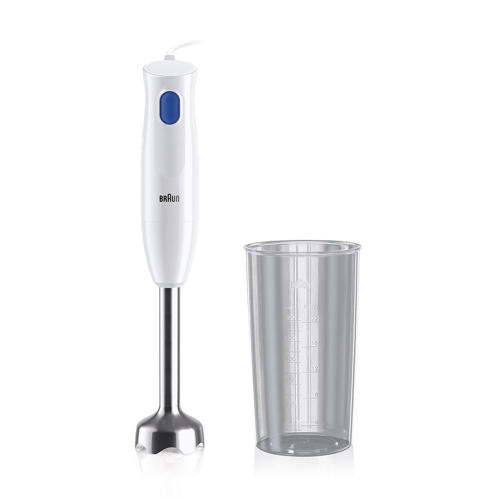 Ραβδομπλέντερ Braun MultiQuick 1 MQ10.001M WH, ελαφρύ με ισχύ 450 Watt, πλαστικό κύπελλο δοσομετρητή 600 ml, και σύστημα EasyTwist για να αλλάζεις γρήγορα εξαρτήματα. Κατάλληλο για πλυντήριο πιάτων.