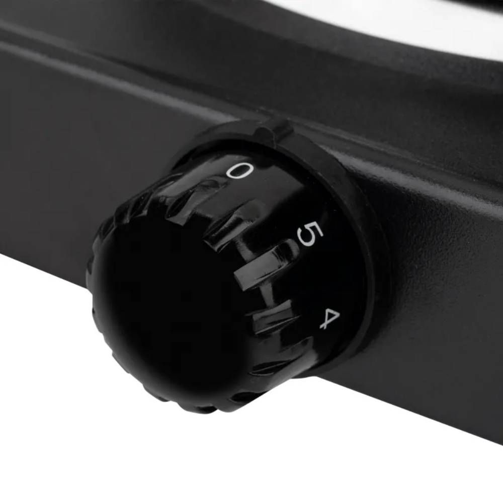 Ηλεκτρική μονή εστία Πλάκα θέρμανσης: 1.000 W διαμέτρου 155 mm. Ρυθμιζόμενος θερμοστάτης θερμοκρασίας. 5 επίπεδα ισχύος. Ενδεικτική λυχνία λειτουργίας Λεπτός σχεδιασμός για εύκολη μεταφορά Αντιολισθητικά πόδια. Προστασία από υπερθέρμανση. Τάση 230V Ισχύς 1.000W