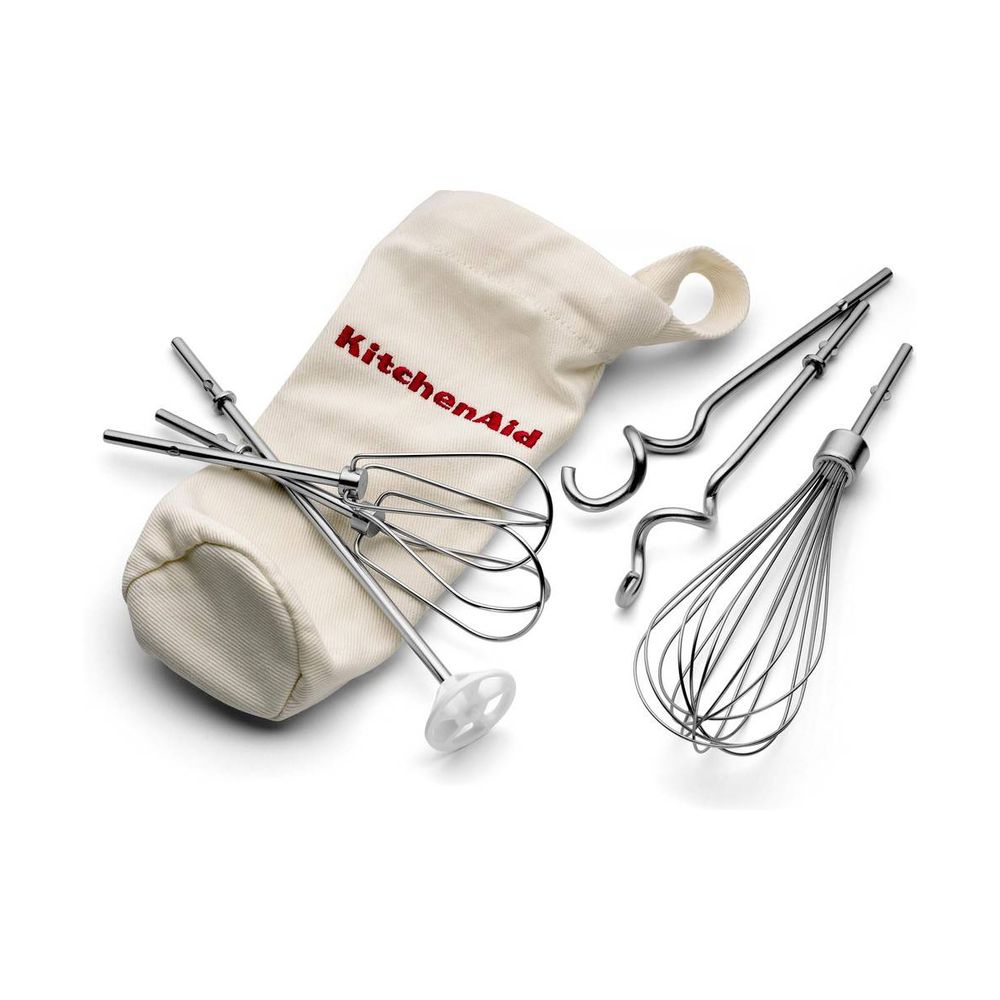 Το KitchenAid μίξερ χειρός έρχεται με τα όλα του! Περιλαμβάνει 2 ανοξείδωτους αναδευτήρες Turbo για τραγανά μπισκότα και αρωματικό κέικ, χτυπητήρι 16 συρμάτων για αφράτη σαντιγί, αβγά και σάλτσες, ράβδο ανάμειξης για λαχταριστά smoothies και milkshakes και 2 γάντζους ζύμης για σπιτικό ψωμί. Το μίξερ διαθέτει 9 διαφορετικές ταχύτητες, ισχυρό και αθόρυβο μοτέρ, άνετη και μαλακή λαβή, ενδεικτική λυχνία ταχυτήτων LED και κουμπί εξαγωγής αναδευτήρα.