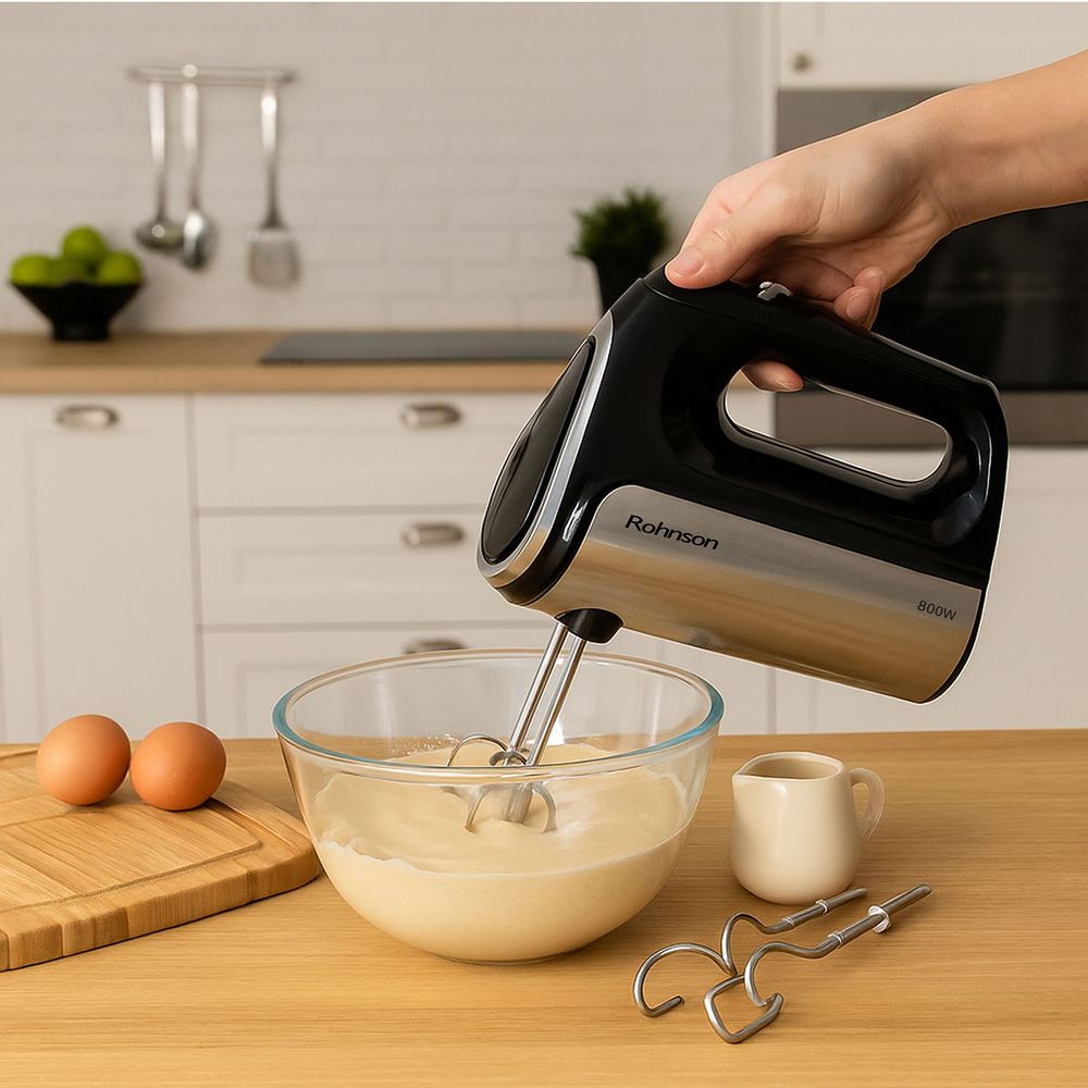 Το μίξερ χειρός Rohnson R-5518 σου προσφέρει σταθερή απόδοση και απόλυτο έλεγχο σε κάθε συνταγή, χάρη στο ισχυρό DC μοτέρ 800W. Ρυθμίζεις εύκολα την ένταση με 5 ταχύτητες και λειτουργία Turbo, ενώ η εκκίνηση χαμηλής ταχύτητας μειώνει τα πιτσιλίσματα. Με εργονομικά κουμπιά και χαμηλό θόρυβο, εξασφαλίζει άνετη χρήση. Τα ανοξείδωτα εξαρτήματα ανάδευσης και ζυμώματος καλύπτουν κάθε καθημερινή ανάγκη στην κουζίνα σου.