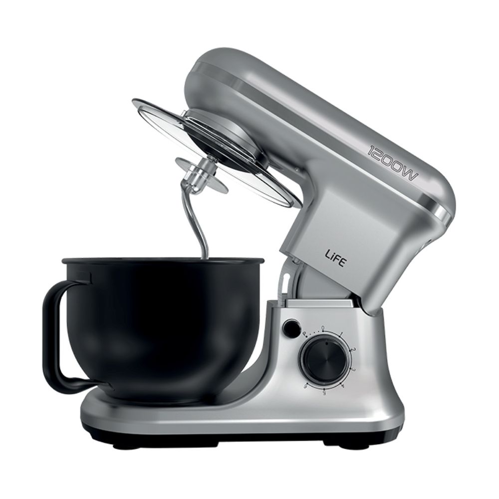 Με την κουζινομηχανή Life Argento δημιούργησε εύκολα cakes, μπισκότα, ζύμες και αφράτη μαρέγκα. Ο ισχυρός κινητήρας 1200W και ο inox κάδος 5L με πρακτικό χερούλι, μαζί με τα τρία εξαρτήματα και τις 6 ταχύτητες, σου επιτρέπουν να ζυμώνεις, ανακατεύεις και χτυπάς κάθε μίγμα γρήγορα και ομοιόμορφα. Ασφαλής, σταθερή και εύκολη στον καθαρισμό, η Life Argento συνδυάζει ισχύ, στυλ και άνεση στην κουζίνα σου.