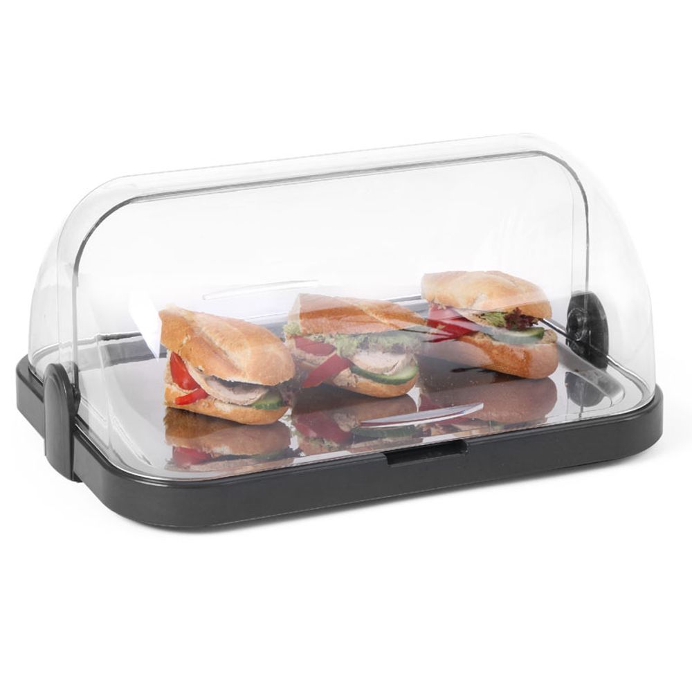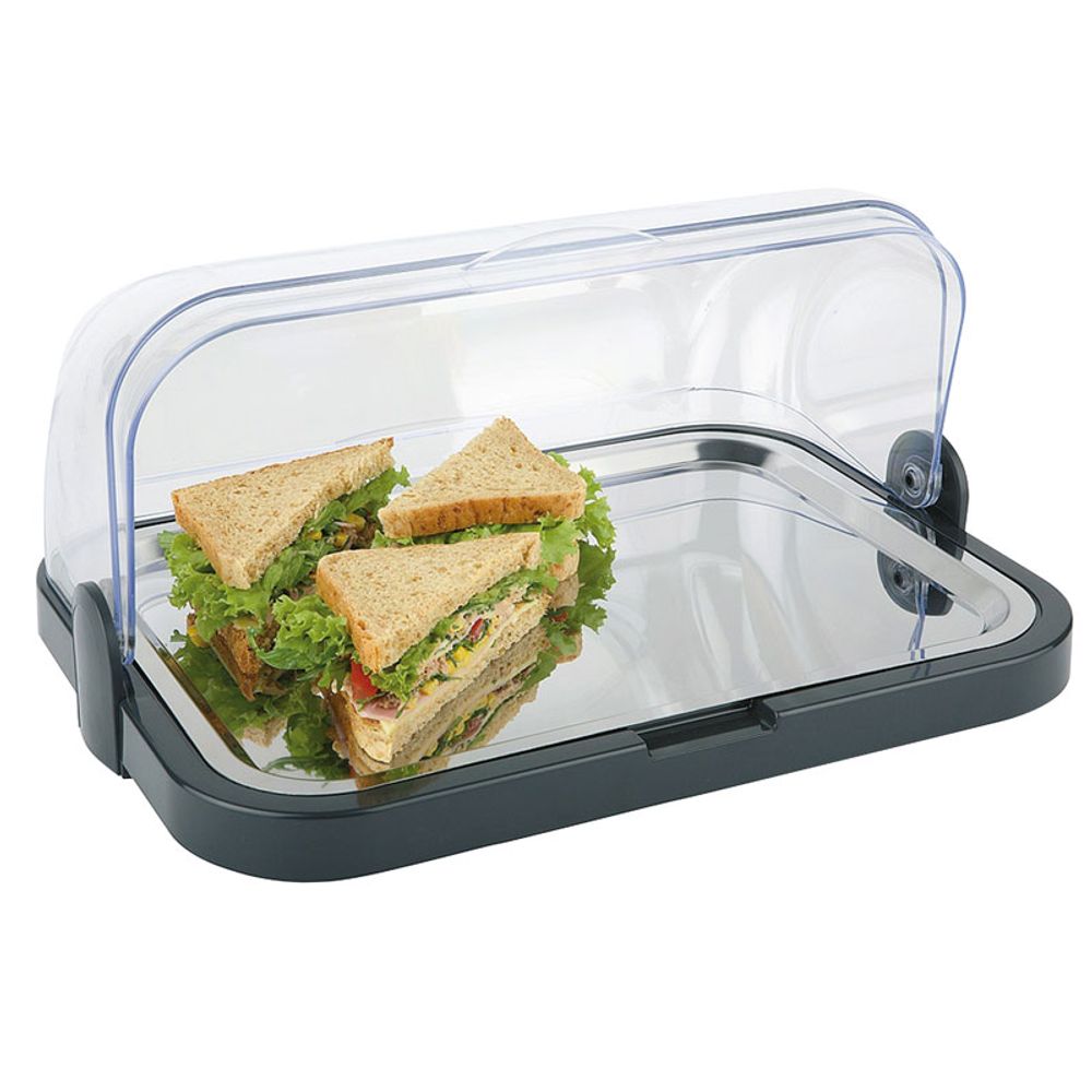 Βιτρίνα συντήρησης Roll Top με ABS πλαστικό με διαφανές και SAN πλαστικό rolltop πάνω κάλυμμα.\r\nΠεριλαμβάνει ανοξείδωτο δίσκο και 2 παγοκύστες.