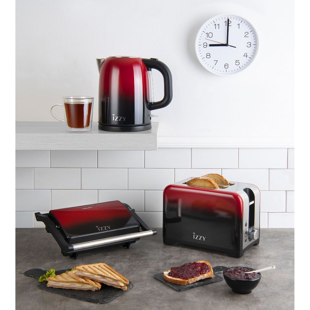 Η σαντουιτσιέρα Ombre Red της Izzy είναι η ιδανική επιλογή για τοστ, σάντουιτς και ψητά για εσένα και τους αγαπημένους σου. Διαθέτει αντικολλητικές πλάκες grill που ψήνουν γρήγορα και υγιεινά το φαγητό σου ενώ καθαρίζουν πανεύκολα. Με πολύ υψηλή ισχύ 1000 W απολαμβάνεις γρήγορο ψήσιμο σε πολύ λίγο χρόνο.