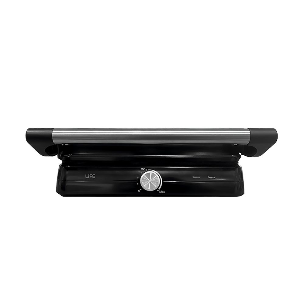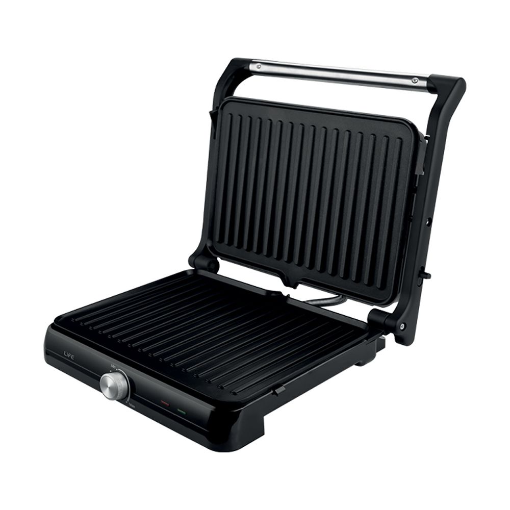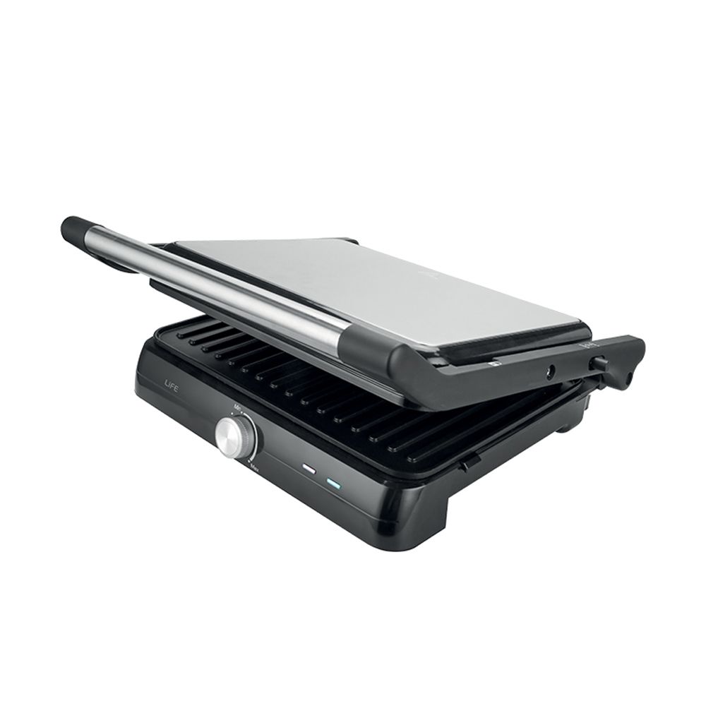 Ηλεκτρική τοστιέρα - γκριλιέρα Life Asado, με ισχύ 2000 Watt, αντικολλητικές πλάκες, άνοιγμα της άνω πλάκας κατά 180, ενδεικτικές λυχνίες λειτουργίας και θερμοκρασίας, cool-touch λαβή και δυνατότητα κάθετης αποθήκευσης.