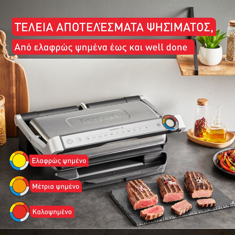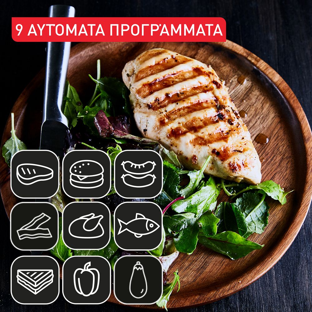 Η Tefal OptiGrill+ XL προσφέρει τέλεια αποτελέσματα ψησίματος κάθε φορά, με έξυπνη τεχνολογία και αισθητήρα μέτρησης πάχους. Αναγνωρίζει το πάχος του φαγητού και προσαρμόζει αυτόματα τον χρόνο ψησίματος. Με εννέα αυτόματα προγράμματα και αντικολλητικές πλάκες που απομακρύνουν το περιττό λίπος, εξασφαλίζει νόστιμα και υγιεινά γεύματα. Ιδανική για οικογένειες και φίλους, η χωρητικότητά της την καθιστά κατάλληλη για μέχρι και 2 μερίδες, κάνοντάς την απαραίτητο εργαλείο στην κουζίνα σου.