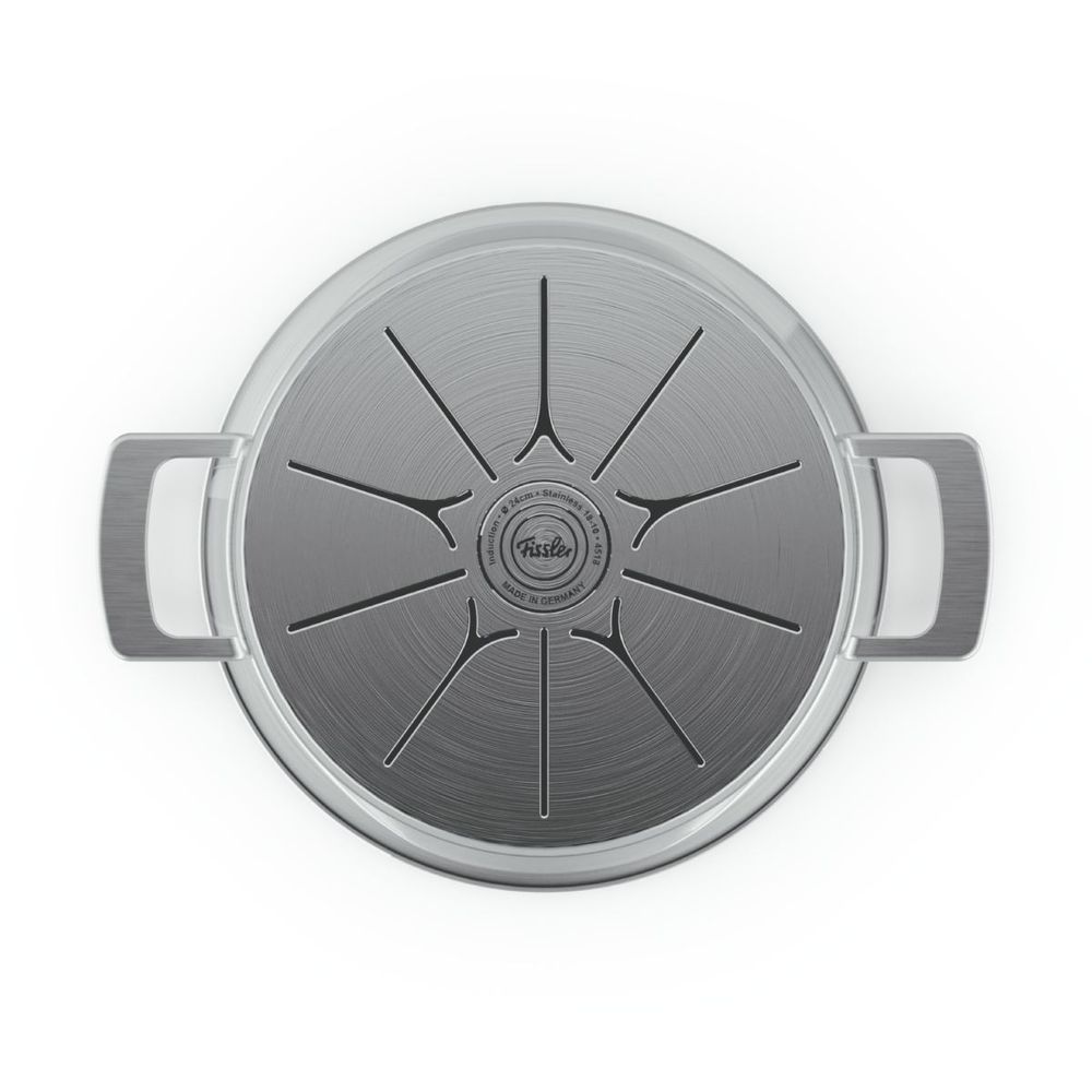 Η μαρμίτα της Fissler είναι κατασκευασμένη από έως και 90% ανακυκλωμένο και 100% ανακυκλώσιμο ανοξείδωτο ατσάλι. Η ενεργειακά αποδοτική βάση Fissler CookStar είναι κατάλληλη για όλους τους τύπους εστιών, συμπεριλαμβανομένων των επαγωγικών, εξασφαλίζοντας ιδανική κατανομή θερμότητας. Οι εργονομικές λαβές εφαρμόζουν τέλεια στο χέρι σου και διατηρούν ευχάριστη θερμοκρασία. Μπορεί να πλυθεί στο πλυντήριο πιάτων.