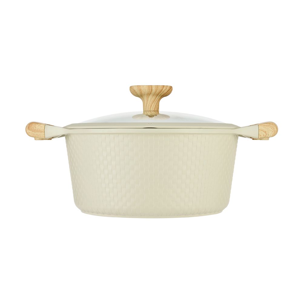 Η συλλογή Ran προσφέρει μια λειτουργική και κομψή σειρά μαγειρικών σκευών, διακοσμημένα με μοτίβο που μοιάζει με υφαντό ύφασμα. Η αντικολλητική επίστρωση Pfluon Cookmark στο εσωτερικό εγγυάται εύκολο μαγείρεμα και εύκολο καθάρισμα. Τα γυάλινα καπάκια με χείλος σιλικόνης και οπή ατμού σε βοηθούν να δημιουργήσεις τις πλέον ειδικές συνταγές. Οι ξύλινες, εργονομικές, μαλακές λαβές και οι επαγωγικοί πυθμένες καθιστούν αυτή τη σειρά κατάλληλη για όλους τους τύπους μαγείρων και κουζινών.