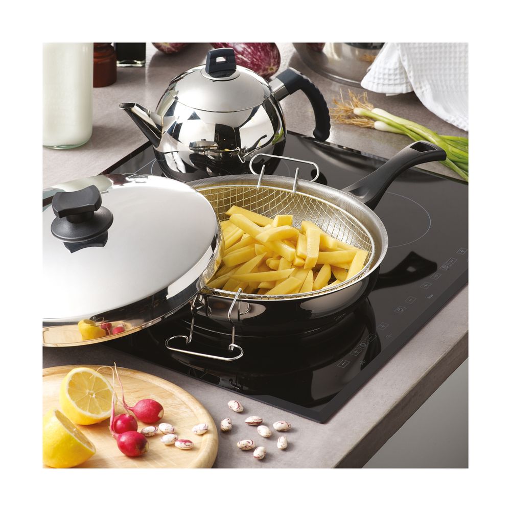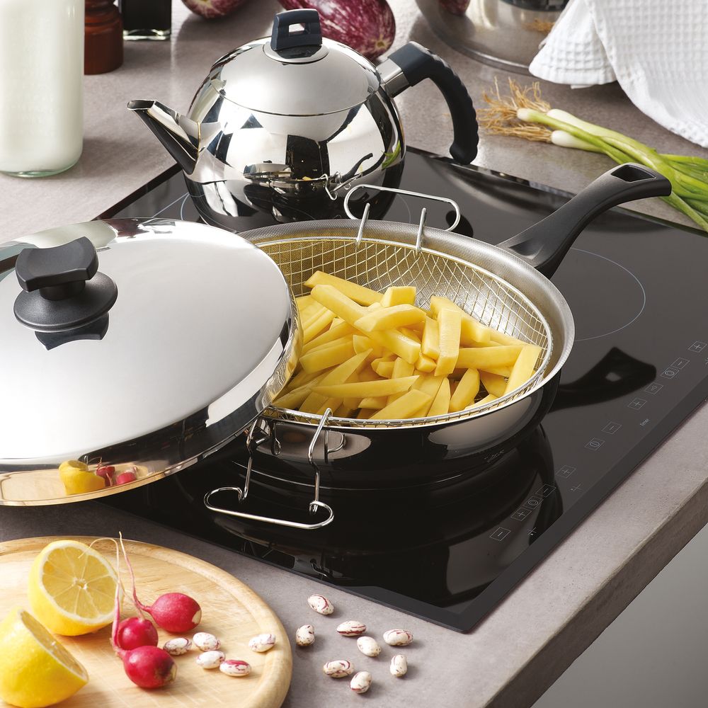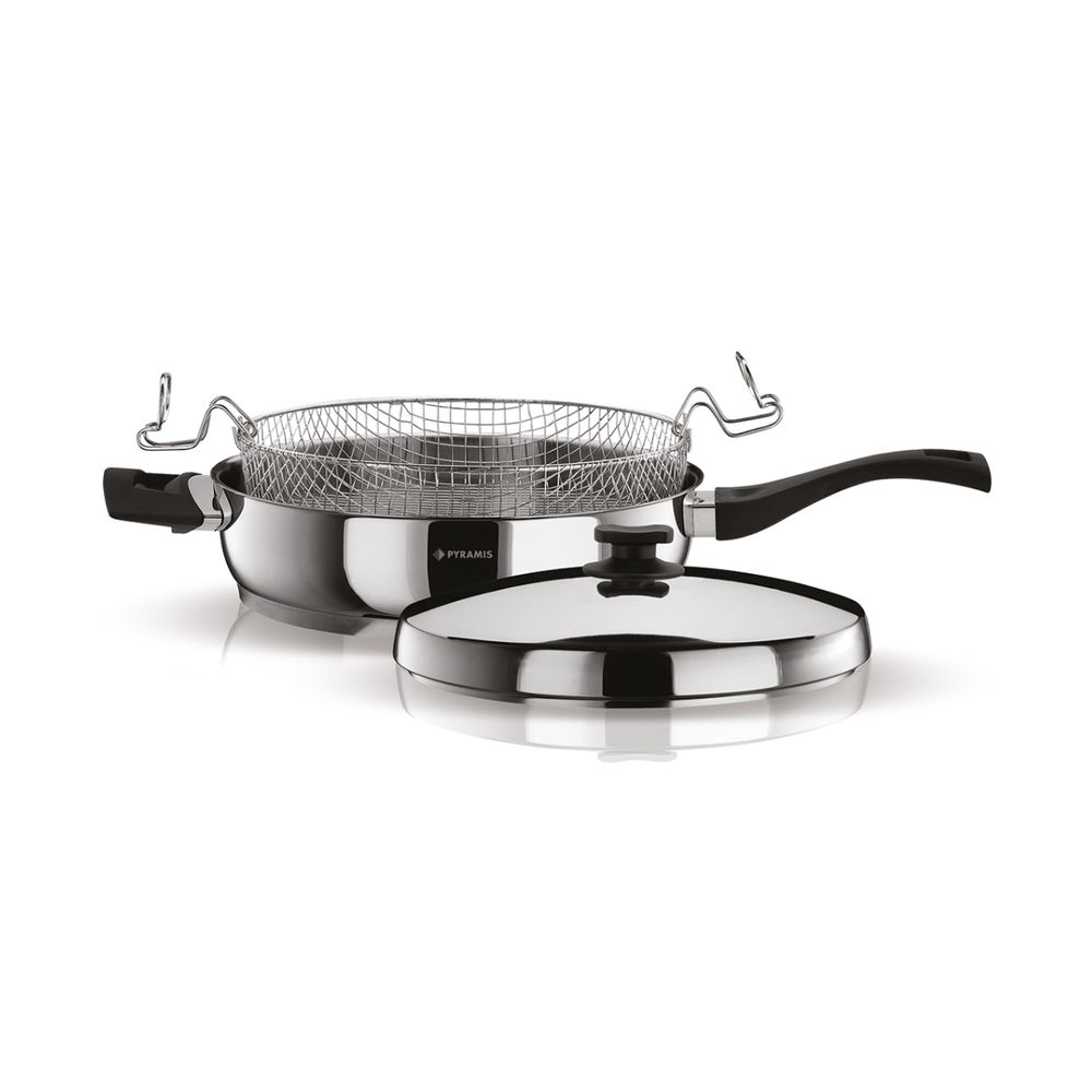 Μαγείρεψε με άνεση και υψηλή απόδοση με το τηγάνι PYRAMIS 28 cm, 5,5 L. Κατασκευασμένο από ανοξείδωτο 18/10 με τριπλή θερμοσυσσωρευτική βάση για γρήγορη και ομοιόμορφη θέρμανση. Τα βακελιτικά χερούλια αντέχουν έως 220°C, ενώ το ανοξείδωτο καπάκι διατηρεί υγρασία και γεύση. Κατάλληλο για όλες τις εστίες, ακόμη και επαγωγικές, με τέλεια εφαρμογή και μηδενικό σκέβρωμα.