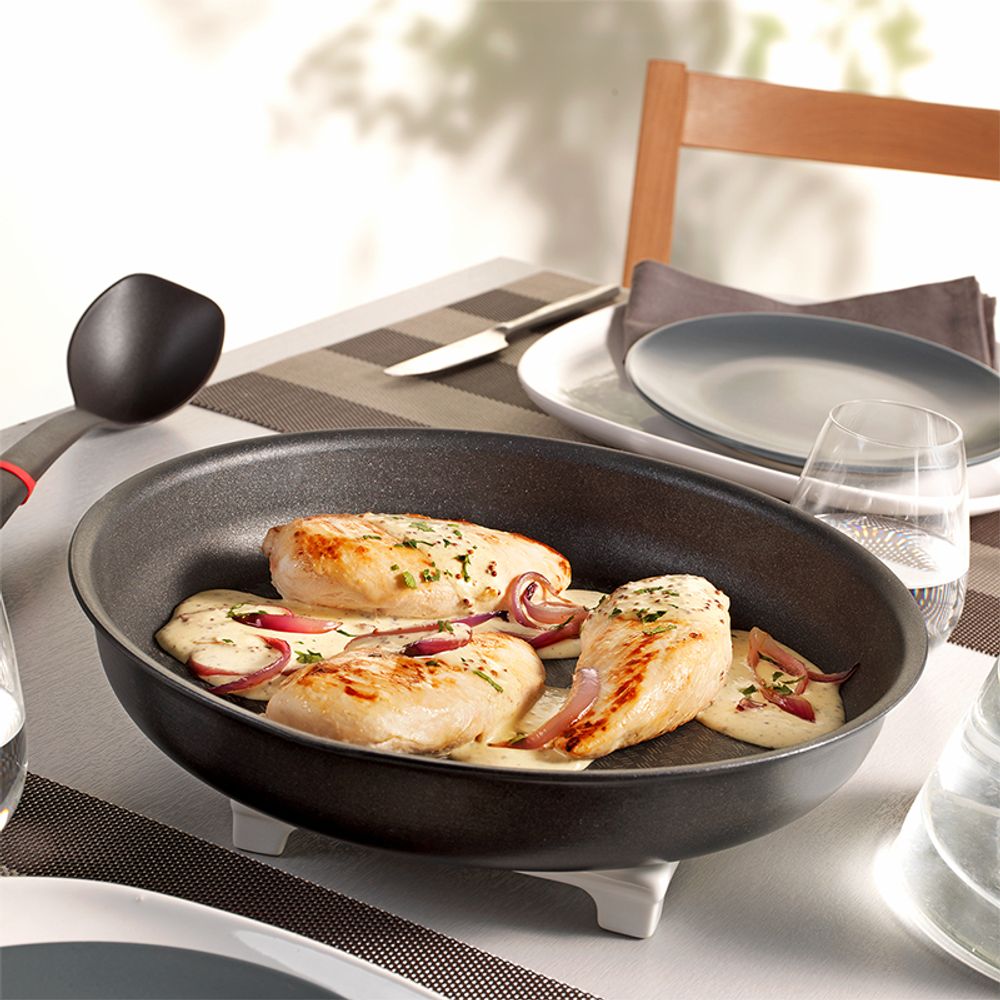 Εξοικονόμησε χώρο στην κουζίνα χάρη στα σκεύη Ingenio και την 100% ασφαλή αποσπώμενη λαβή. Με ένα μόνο κλικ μαγείρεψε στο μάτι της κουζίνας και στον φούρνο με το ίδιο σκεύος!