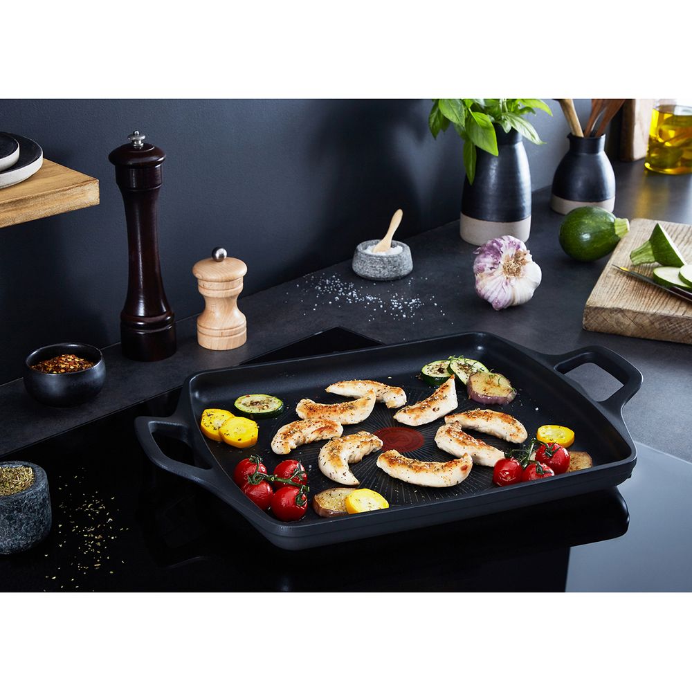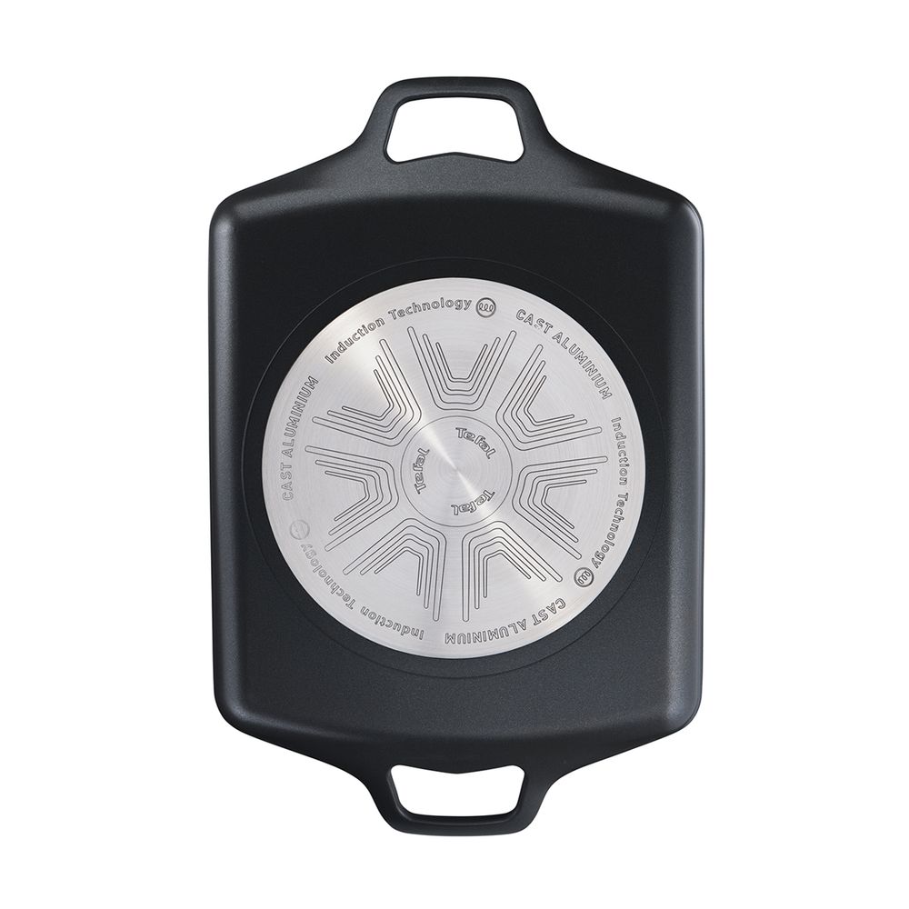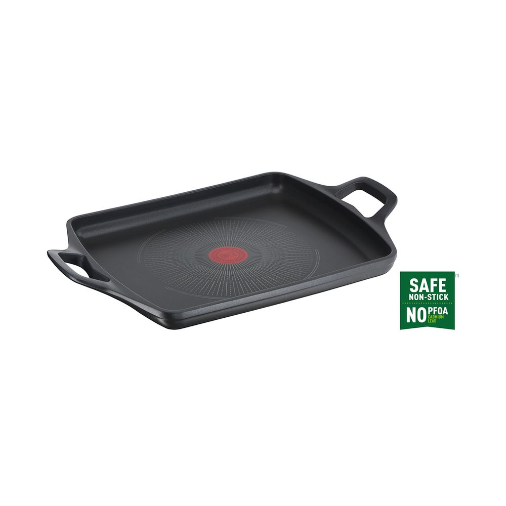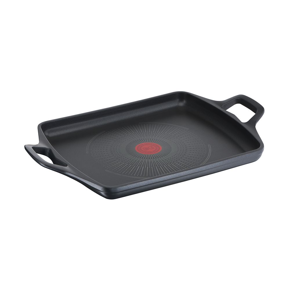 Πλάκα ψησίματος Tefal Robusto από χυτό αλουμίνιο που διατηρεί την θερμότητα για λαχταριστά πιάτα και αντικολλητική επίστρωση τιτανίου για εύκολο καθάρισμα. Διαθέτει ενσωματωμένες πλευρικές λαβές, τεχνολογία Thermo-Signal, ενώ είναι κατάλληλη και για πλυντήριο πιάτων.
