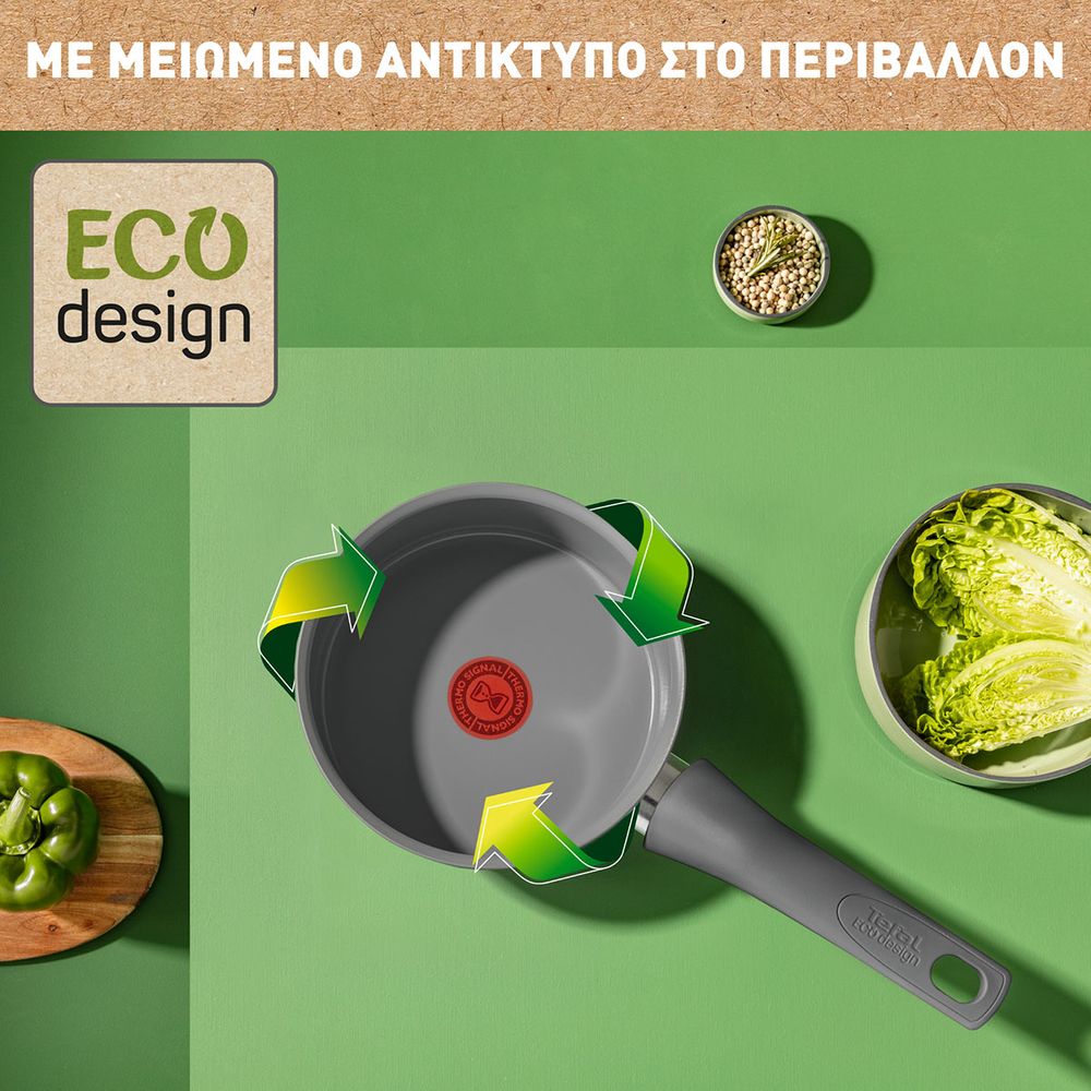 Με την σειρά μαγειρικών σκευών Renewal, η Tefal φέρνει την καινοτομία στα μαγειρικά σκεύη με κεραμική επίστρωση για έναν εντελώς νέο τρόπο μαγειρέματος. Κατασκευασμένη από αλουμίνιο με 100% ανακυκλωμένα υλικά αφήνει μειωμένο περιβαλλοντικό αποτύπωμα και η αντικολλητική κεραμική επίστρωση νέας γενιάς υπόσχεται αβίαστη ολίσθηση που δεν απαιτεί λίπος ή λάδι. Εξοπλισμένη με την αποκλειστική ένδειξη θερμότητας Thermo-Signal της Tefal για να εξασφαλίσει τέλειο ψήσιμο.