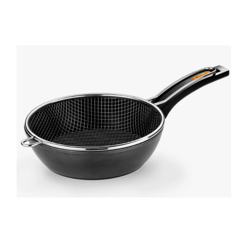 Τηγάνι φριτούρα Fuego με βαθύ σκεύος από σφυρήλατο αλουμίνιο 3,5–3,8 mm και αντικολλητική επίστρωση δύο στρωμάτων χωρίς PFOA. Περιλαμβάνει ανοξείδωτο καλάθι με χερούλι, που λειτουργεί και ως σουρωτήρι ή στραγγιστήρι.