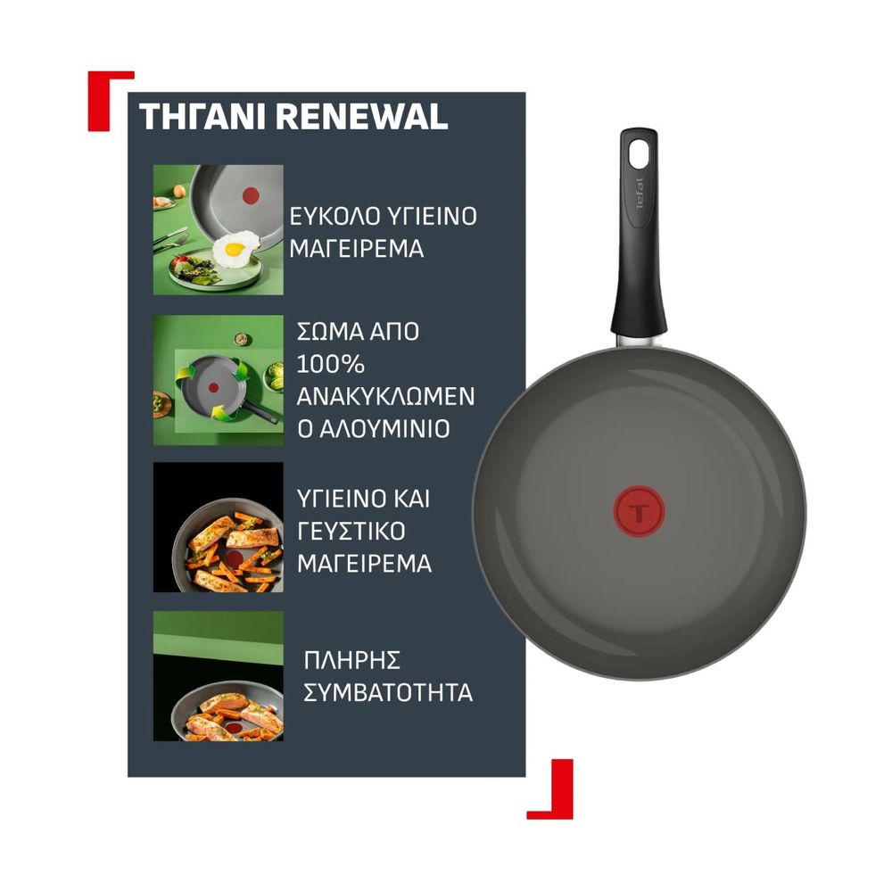 Απόλαυσε υγιεινό, σπιτικό φαγητό με το Tefal Renewal 30cm αντικολλητικό τηγάνι. Γαλλικής κατασκευής από 100% ανακυκλωμένο αλουμίνιο, με κεραμική αντικολλητική επίστρωση Inoceram Glide για εύκολο μαγείρεμα με λίγα λιπαρά. Με Thermo-Signal για ιδανική θερμοκρασία και πλήρη συμβατότητα με όλες τις εστίες, σου εξασφαλίζει άψογα αποτελέσματα κάθε μέρα.