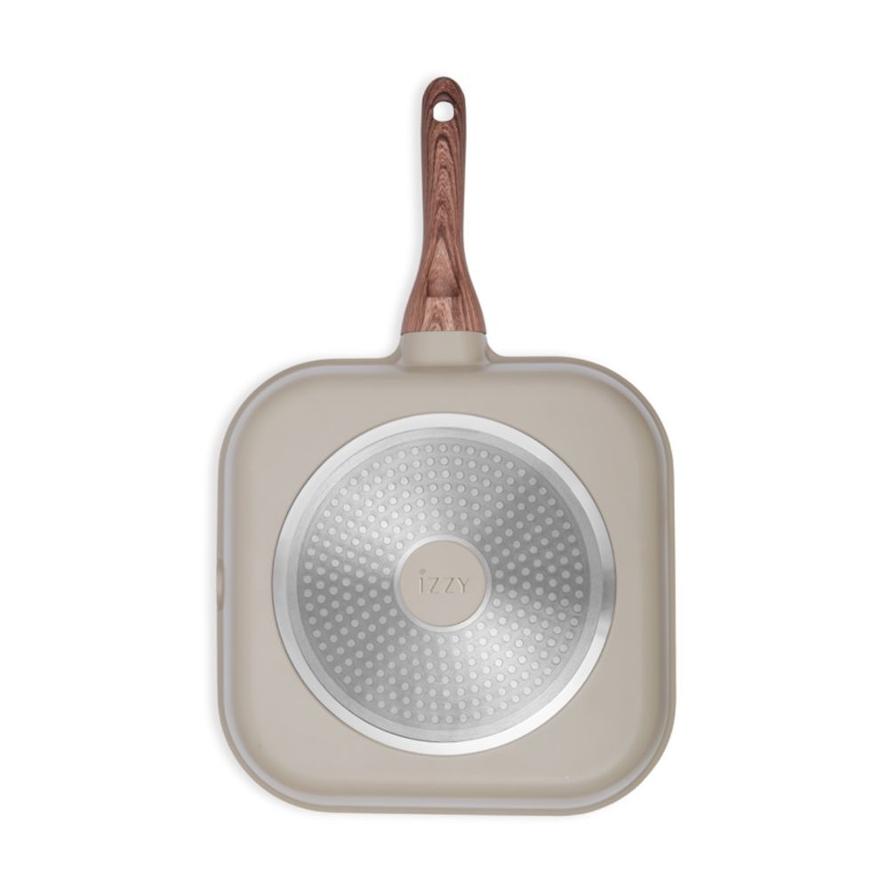 Απόλαυσε αυθεντικό ψήσιμο στο σπίτι με τη γκριλιέρα Izzy Eléa New 28×28 εκ. Από χυτό αλουμίνιο με τριπλή αντικολλητική επίστρωση Natura χωρίς PFOA, κάδμιο και μόλυβδο, ψήνεις υγιεινά κρέας, ψάρι και λαχανικά. Κατάλληλη για όλες τις εστίες, ανθεκτική, εύκολη στον καθαρισμό και πλυντήριο πιάτων, συνδυάζει απόδοση και άνεση στην κουζίνα σου.