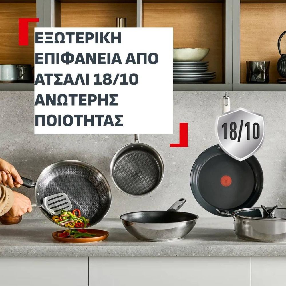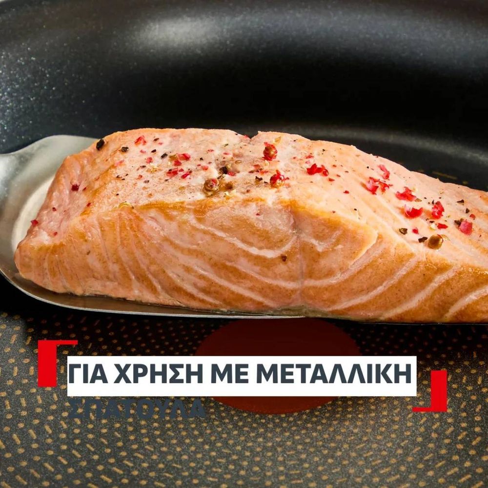 Διαθέτει αντικολλητική επίστρωση 5x πιο ανθεκτική, κατάλληλη για μεταλλικές σπάτουλες, καθώς και επαγωγική βάση υψηλής απόδοσης για άριστο μαγείρεμα κάθε φορά.