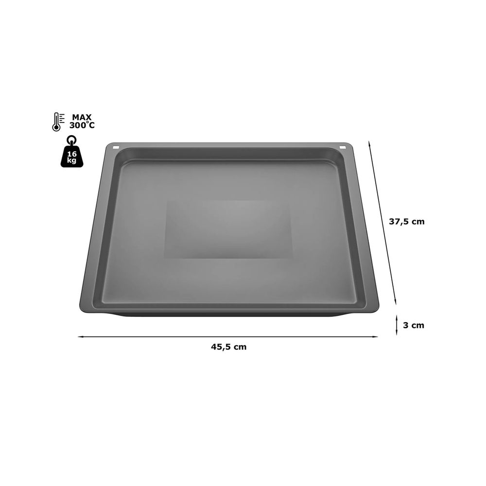 Εμαγιέ ταψί Siemens HZ531010, με υψηλής ποιότητας αντικολλητική επίστρωση, ανθεκτικό σε θερμότητα έως 300°C. Ιδανικό για είδη αρτοποιίας, δεν είναι κατάλληλο για εφαρμογές υψηλής έντασης ατμού ή αυτοκαθαριζόμενου/πυρολυτικού καθαρισμού.