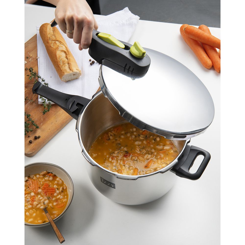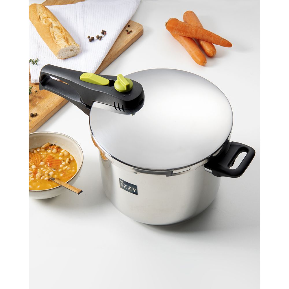 Χύτρα Ταχύτητος Family 8Lt της ΙΖΖΥ, από ανοξείδωτο ατσάλι υψηλής ποιότητας, για γρήγορο και υγιεινό μαγείρεμα με εξαιρετική άνεση. Iδανική για όλους τους τύπους εστιών και τις επαγωγικές.