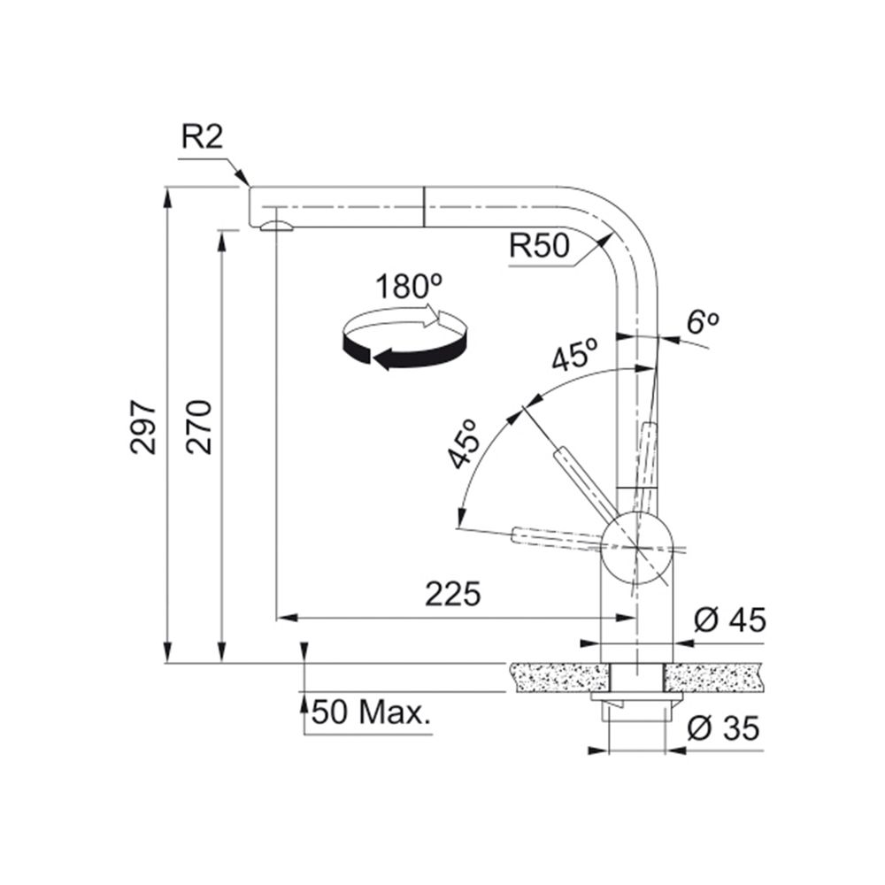 Atlas Neo Ντους μπαταρία κουζίνας από τη Franke κατασκευασμένη από ανοξείδωτο υλικό και με μοναδικό πρωτότυπο σχεδιασμό. Η απόχρωση της ταιριάζει απόλυτα με κάθε είδους νεροχύτη και στυλ κουζίνας.