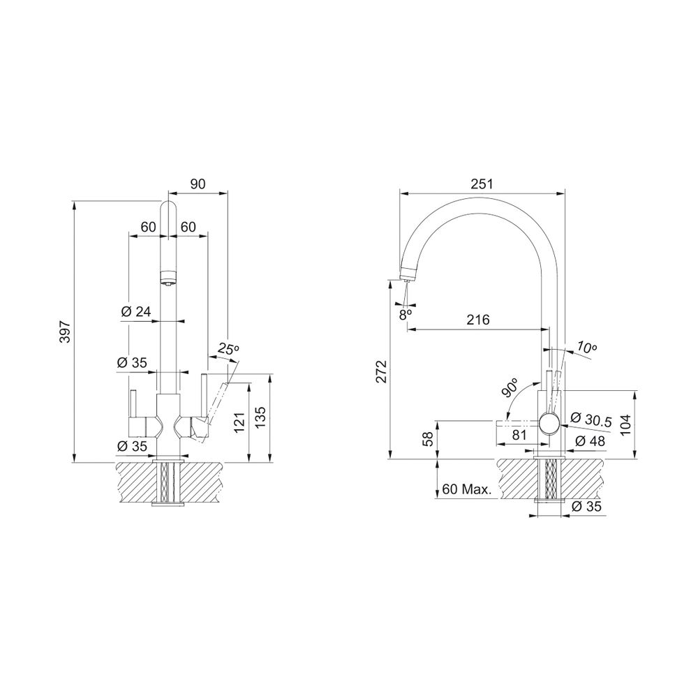 Franke Lina J Standard Clear Water Chrome Μπαταρία με Φίλτρο