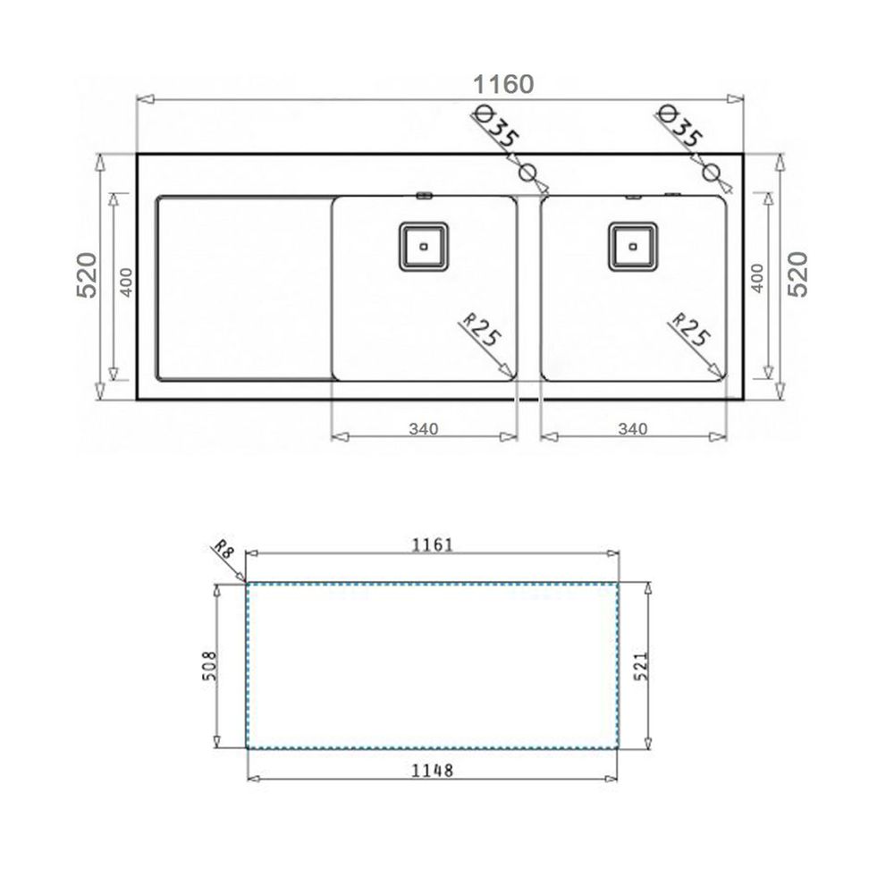Pyramis Olynthos 116Χ52 2Β 1D RH Βουρτσισμένος Νεροχύτης Κουζίνας