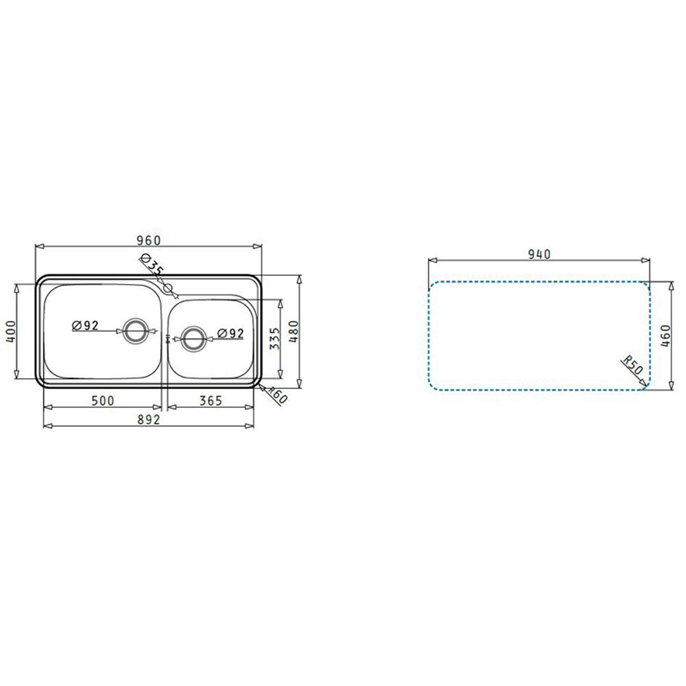 Pyramis Space Plus 96X48 2B Γυαλισμένος Νεροχύτης Κουζίνας