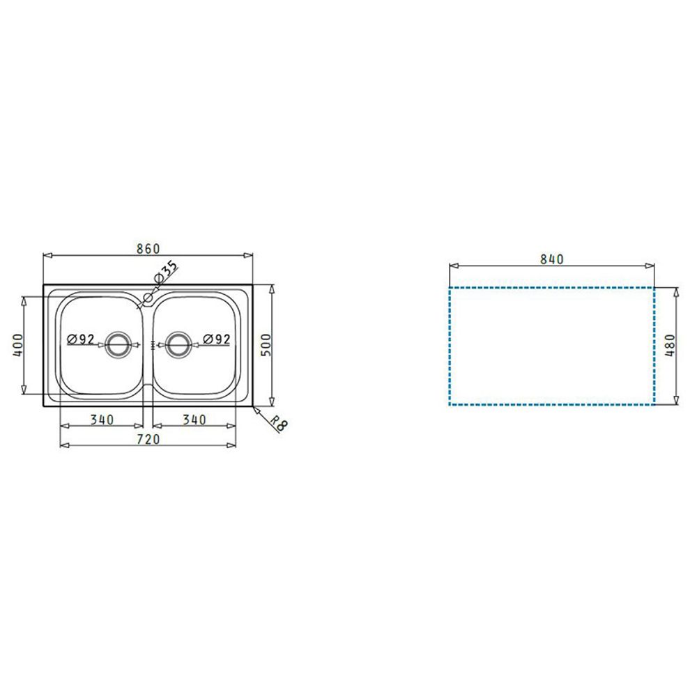 Pyramis Amaltia 86x50 2B Γυαλισμένος Νεροχύτης Κουζίνας