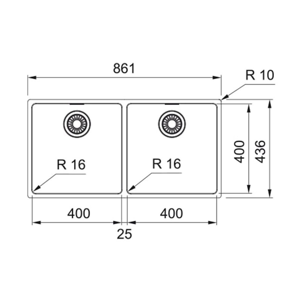 Νεροχύτης ανοξείδωτος ένθετος 86.1x43.6 από inox επιφάνεια με βουρτσισμένο φινίρισμα, κιτ απορριμμάτων, τρύπα υπερχείλισης και 2 γούρνες.