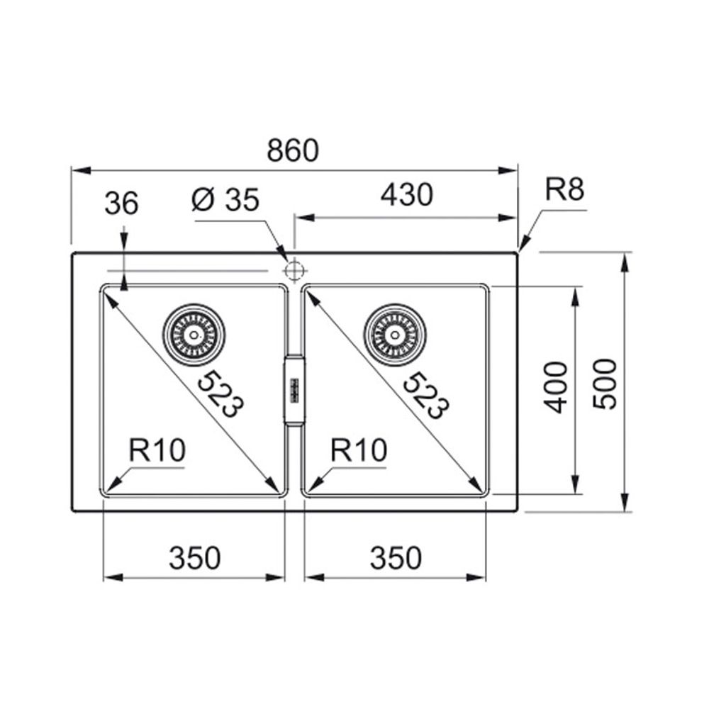 Συνθετικός νεροχύτης Franke Sirius 2.0 620 με δύο γούρνες, οπή μπαταρίας, Φ90mm εκροές, σε χρώμα Tittanium Silver.