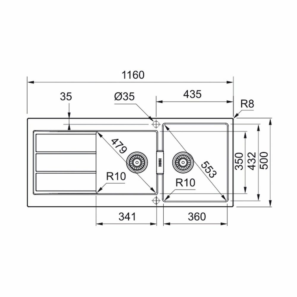 Νεροχύτης ένθετος συνθετικός Sirius 2.0 621 της Franke με δύο γούρνες και ποδιά για να στεγνώνεις τα πλυμένα σερβίτσια. Συμπεριλαμβάνονται βαλβίδες και σιφώνια.