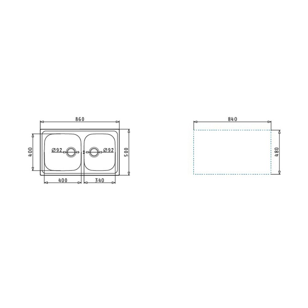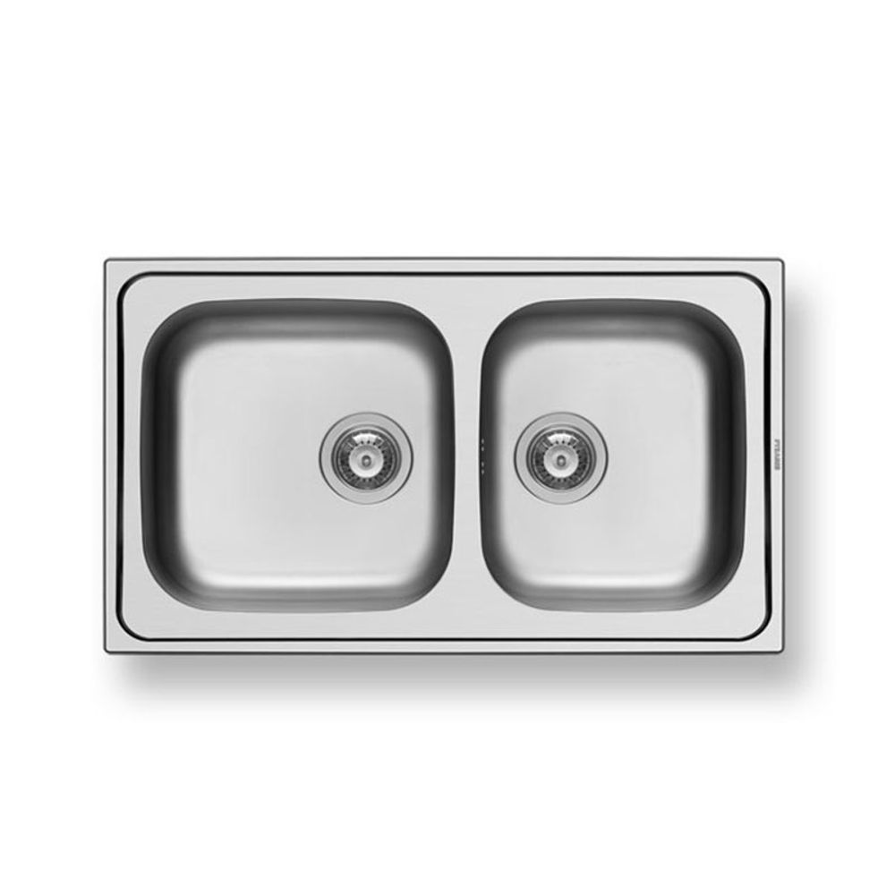 Ανοξείδωτος σντιστρεφόμενος ένθετος νεροχύτης Pyramis Dorian 2B με 2 γούρνες 86x50 cm και εξαιρετική αντοχή σε ισχυρά οξέα.