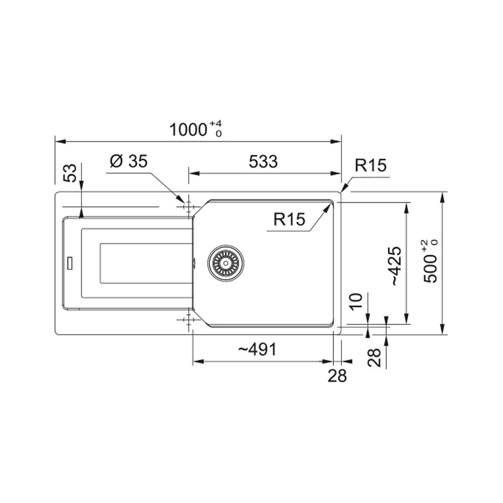 Γρανιτένιος νεροχύτης Urban UBG 611-100 1000x500mm, ένθετος, αντιστρεφόμενος, με αυτόματη βαλβίδα