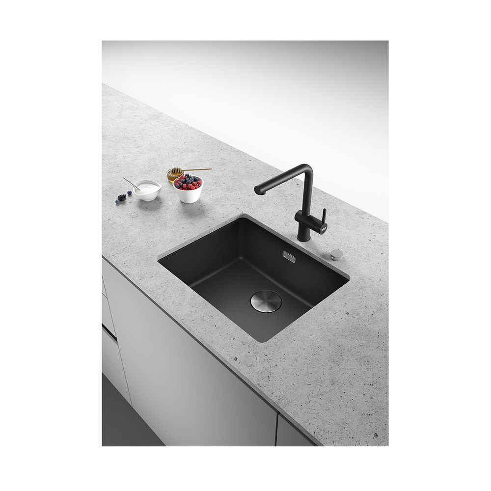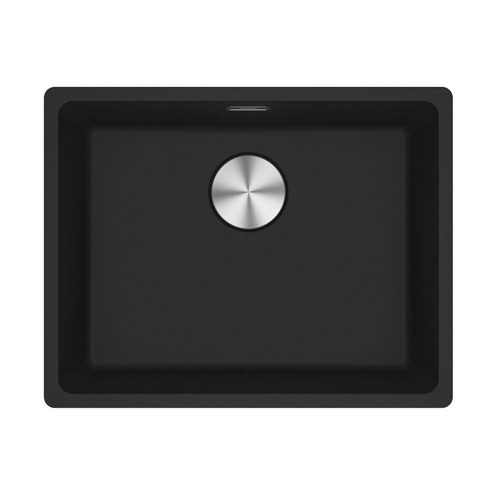Γρανιτένιος νεροχύτης Maris Bowl MRG 110-52 553x433mm, με 1 γούρνα, χωρίς ποδιά, υποκαθήμενος, matte black, με αυτόματη βαλβίδα και ελάχιστο μέγεθος ντουλαπιού 60cm.