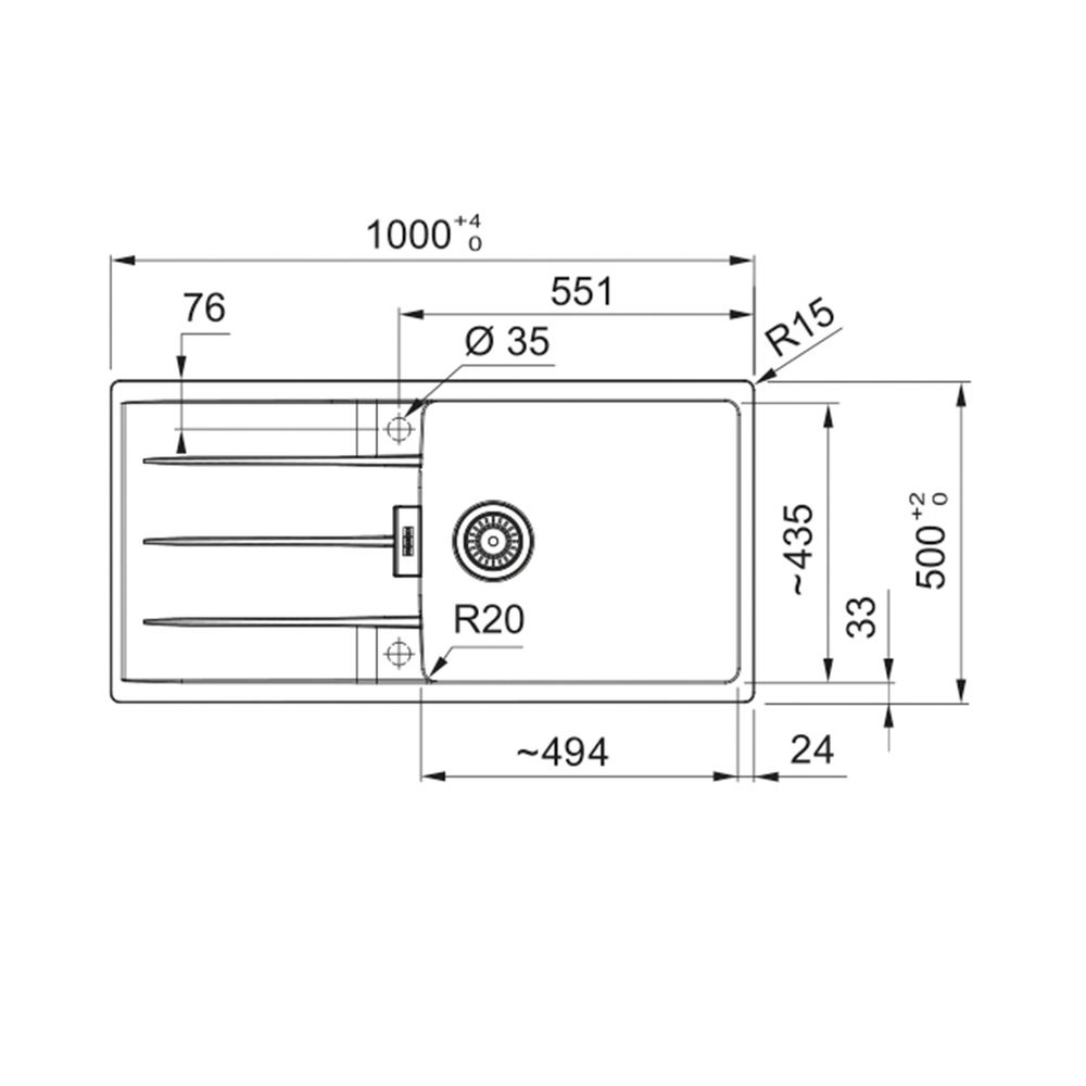 Γρανιτένιος νεροχύτης Centro CNG 611-100 1000x500mm, αντιστρεφόμενος, slate grey, με ανοξείδωτη βαλβίδα και υπερχείλιση.