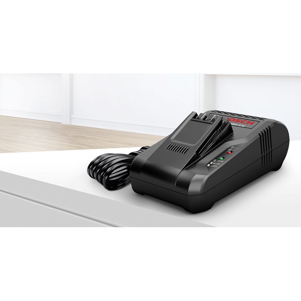 Ταχυφορτιστής για ταχεία φόρτιση των εναλλασσόμενων μπαταριών Power for ALL και παρατεταμένη διάρκεια λειτουργίας για τη σκούπα σου Bosch Unlimited, η οποία φορτίζει πλήρως μια μπαταρία 3,0Ah σε 60’ λεπτά.