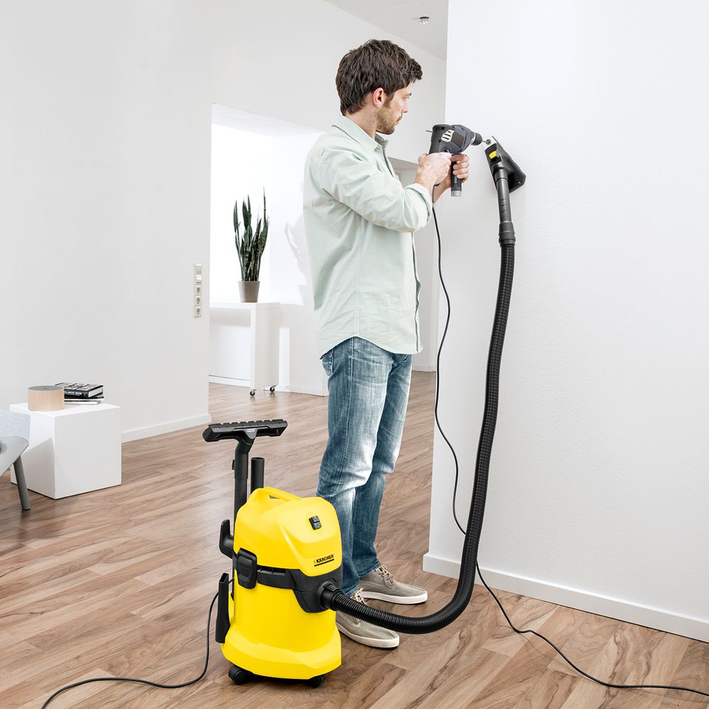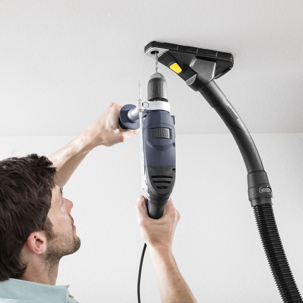 Αντί να κουράζεσαι με επιπλέον σάρωση ή αναρρόφηση, μπορείς να μαζέψεις τη σκόνη από το τρυπάνι στην πηγή, κατευθείαν από την τρύπα που κάνεις με το τρυπάνι. Άρα, δεν έχει σημασία αν θέλεις να τρυπήσεις τον τοίχο ή το ταβάνι ή ακόμα και επιφάνειες όπως πλακάκια, ταπετσαρίες, γύψο, πέτρα, τσιμέντο ή ξύλο.