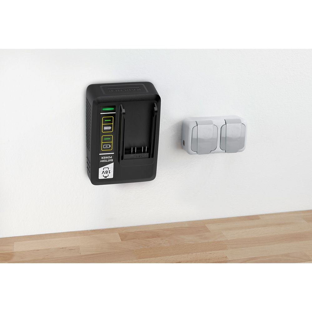 Ο φορτιστής ταχείας φόρτισης που περιλαμβάνεται στο σετ φορτίζει την μπαταρία 18V/2,5Ah Battery Power της Karcher στο 80% μέσα σε μόλις 44 λεπτά. Το Battery Power 18/25 Starter Kit της Karcher είναι κατάλληλο για χρήση σε όλες τις συσκευές στην πλατφόρμα μπαταριών Karcher 18 V.