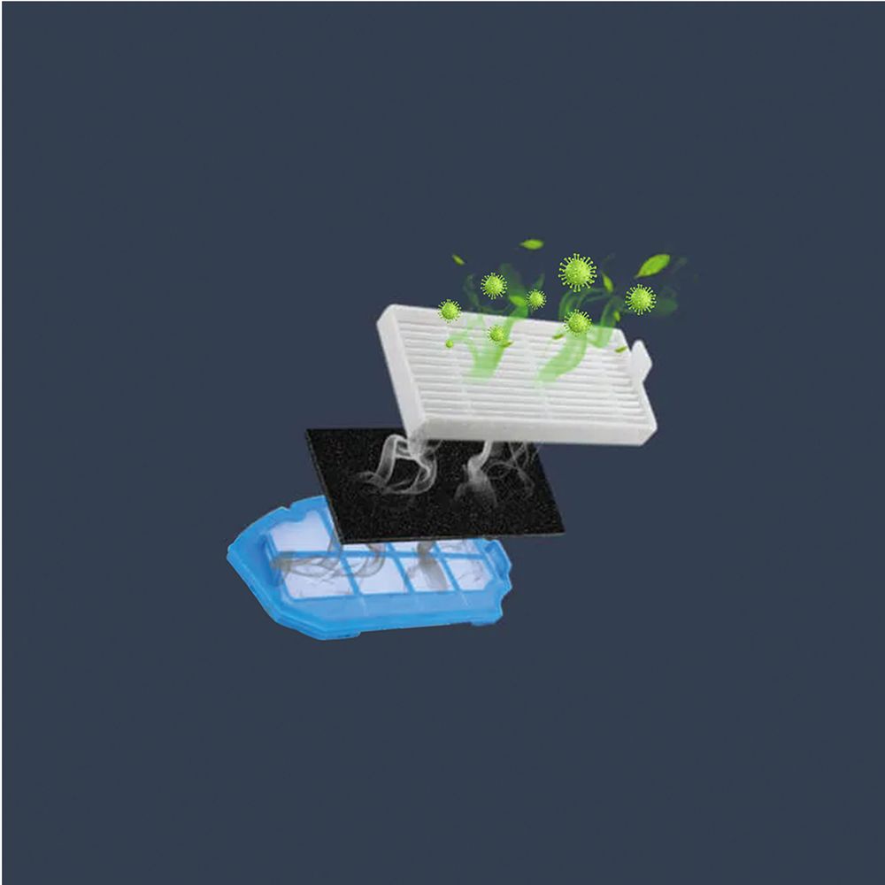 Ένα ολοκληρωμένο Kit αξεσουάρ για τη Robot Rohnson Mamba, το οποίο περιλαμβάνει 2 πλευρικές βούρτσες, ειδικό πανί από μικροϊνες, Brush roller, Soft roller και φίλτρα Hepa, σκόνης και άνθρακα. Τα φίλτρα, εξασφαλίζουν καθαρισμό και αποστείρωση του εξερχόμενου αέρα.