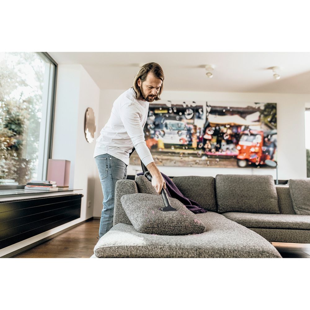 Σετ εξαρτημάτων κατάλληλο για ηλεκτρικές σκούπες Karcher WD, που περιλαμβάνει πέλμα ταπετσαριών και εναλλασσόμενο πέλμα δαπέδου.