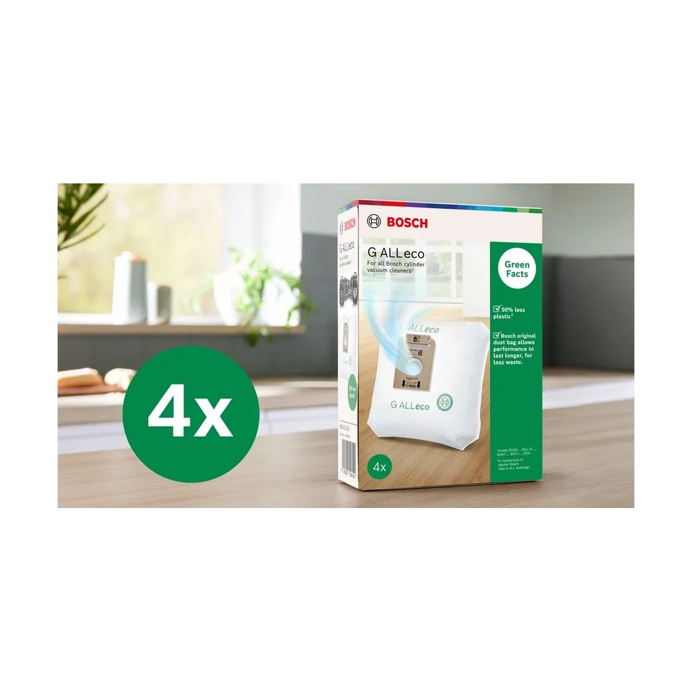 Οι σακούλες σκούπας Bosch Type G All Eco, σου εξασφαλίζουν μέγιστη απόδοση στη σκούπα σου, ενώ χρησιμοποιούν 50% λιγότερο πλαστικό σε σχέση με τις συμβατικές σακούλες. Εφαρμόζουν εύκολα, αναπτύσσονται πλήρως για μεγαλύτερη χωρητικότητα και προσφέρουν φιλτράρισμα 99,9% με Hygiene Lock, συγκρατώντας ακόμα και τα πιο λεπτά σωματίδια. Στη συσκευασία θα βρεις 4 σακούλες, ιδανικές για καθαριότητα με υγιεινή και αντοχή.