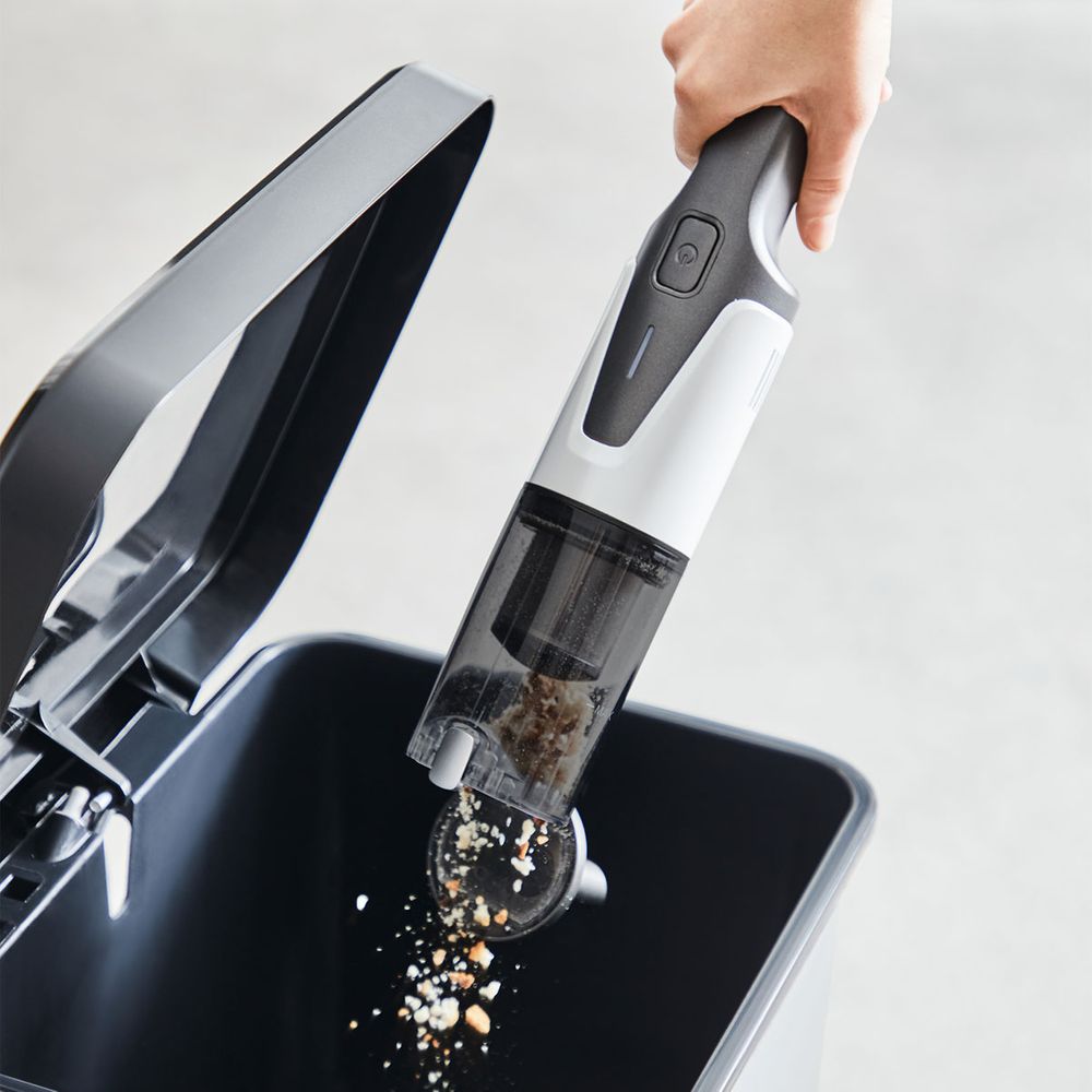 Rowenta σκουπάκι χειρός 7.4V με δοχείο 200ml και βολική, συμπαγής βάση φόρτισης, με αυτονομία λειτουργίας 10 λεπτά, μικρή βούρτσα για απαλό καθάρισμα των ευαίσθητων σημείων και ένα προσεγμένο ρύγχος για γωνίες, για απεριόριστο καθάρισμα όλων των δύσκολων περιοχών. Επιπλέον, διαθέτει λυχνία φόρτισης LED για να σε προειδοποιεί όταν χρειάζεται φόρτιση και έχει 2 τρόπους αδειάσματος για απόλυτη υγιεινή.